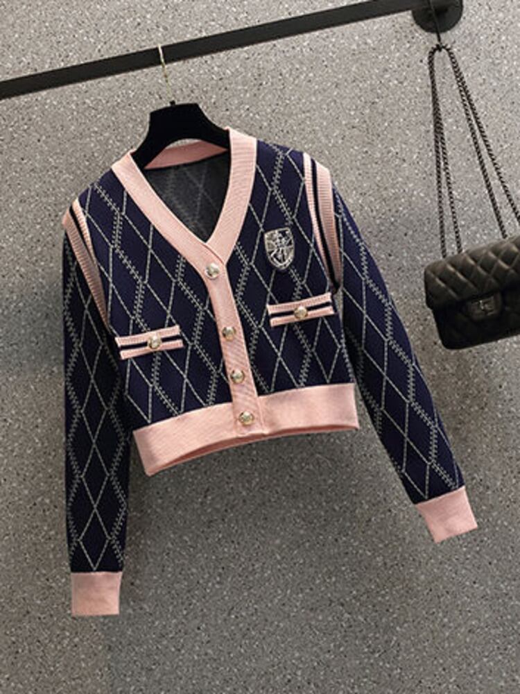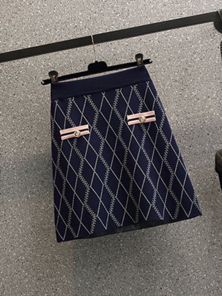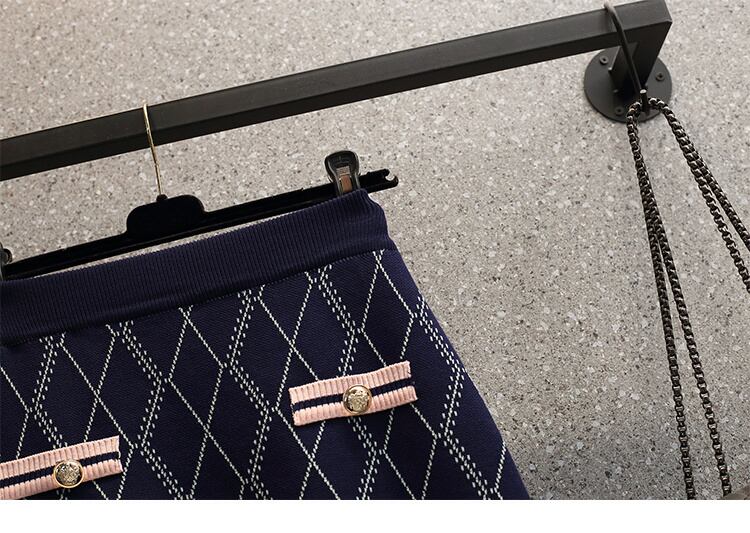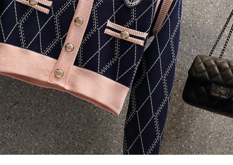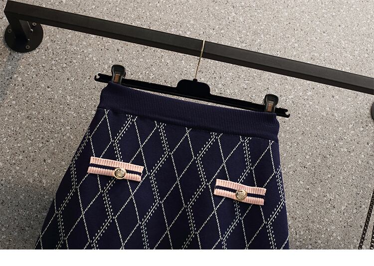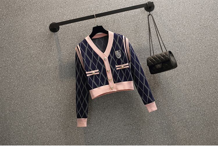 チェック柄ニットツーピースセット女性セーターカーディガンコートクロップトップ + ミニスカートセット小さな香り 2 ピーススーツ mes6910211347