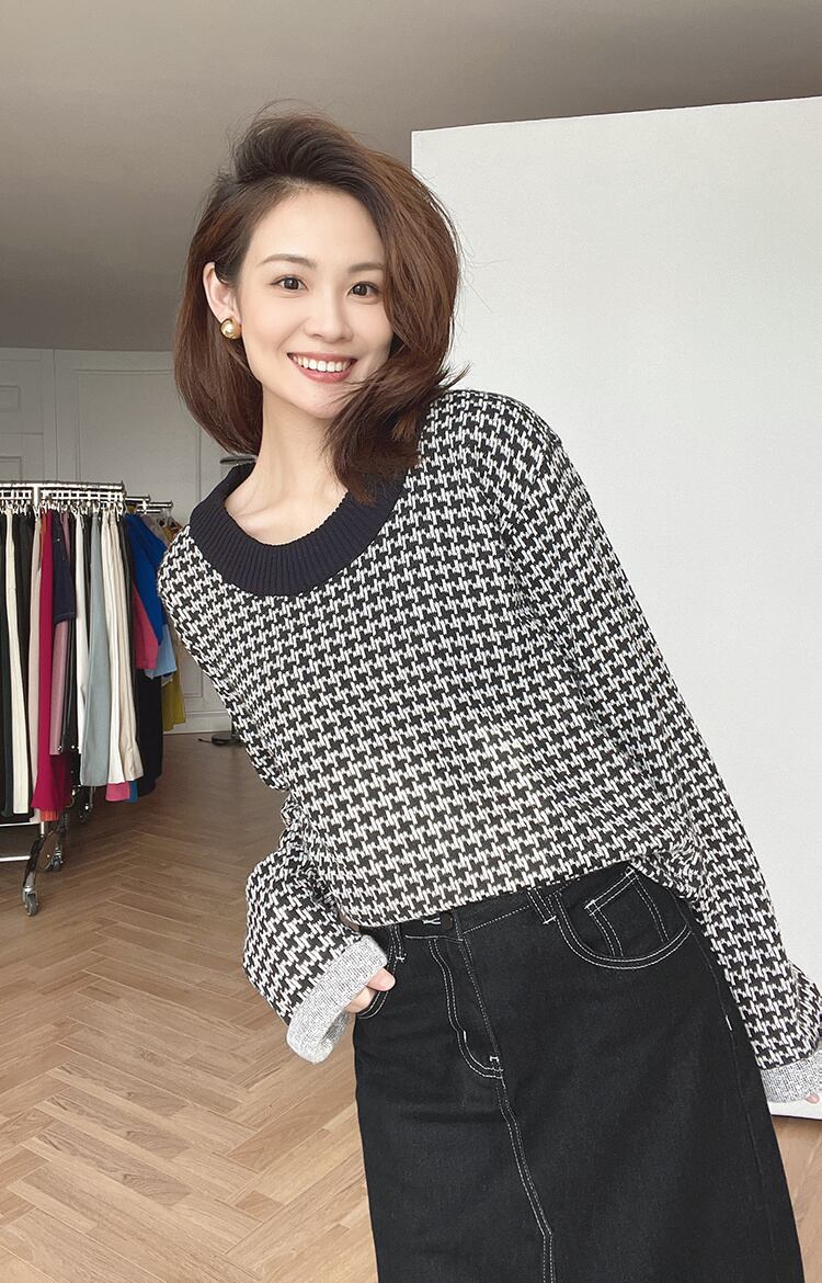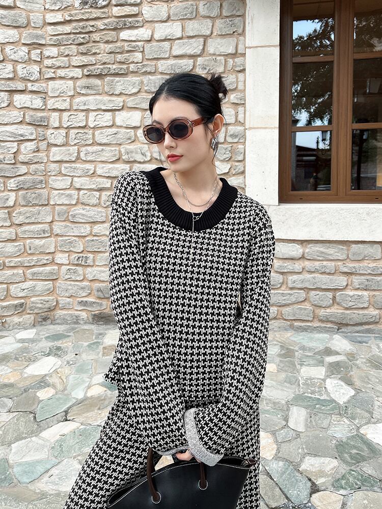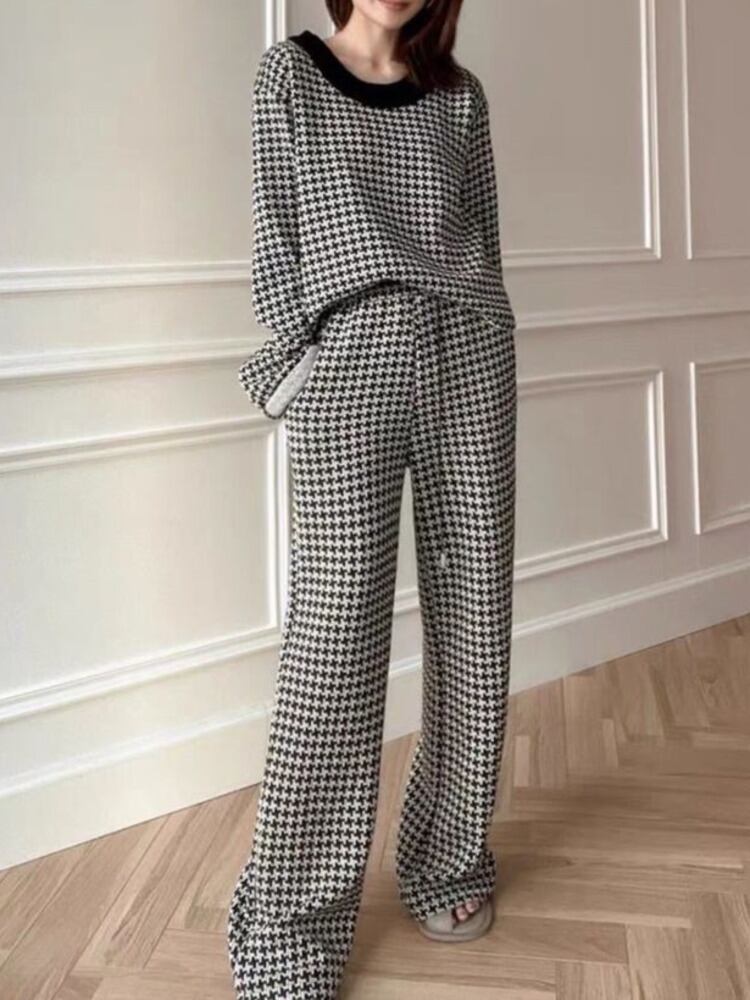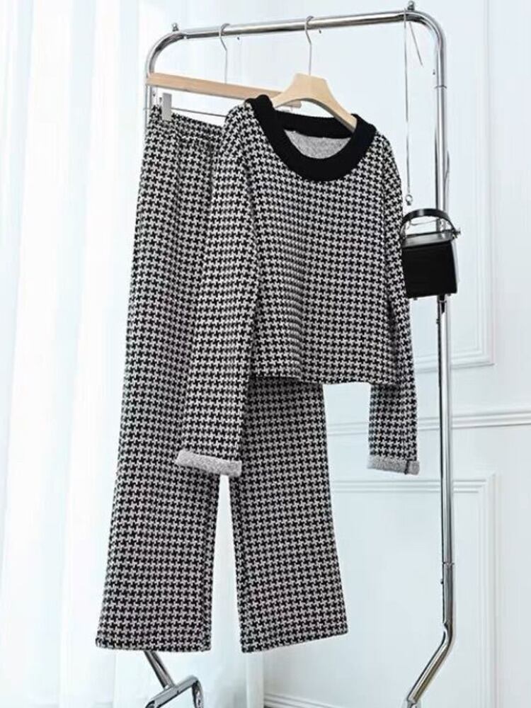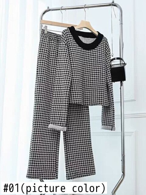 高級千鳥格子 2 個セット女性トラックスーツ秋冬ニットプルオーバーセーター + パンツスーツ汗ズボンスーツ オータム 秋物 ウィンター 冬物 mes91109544432