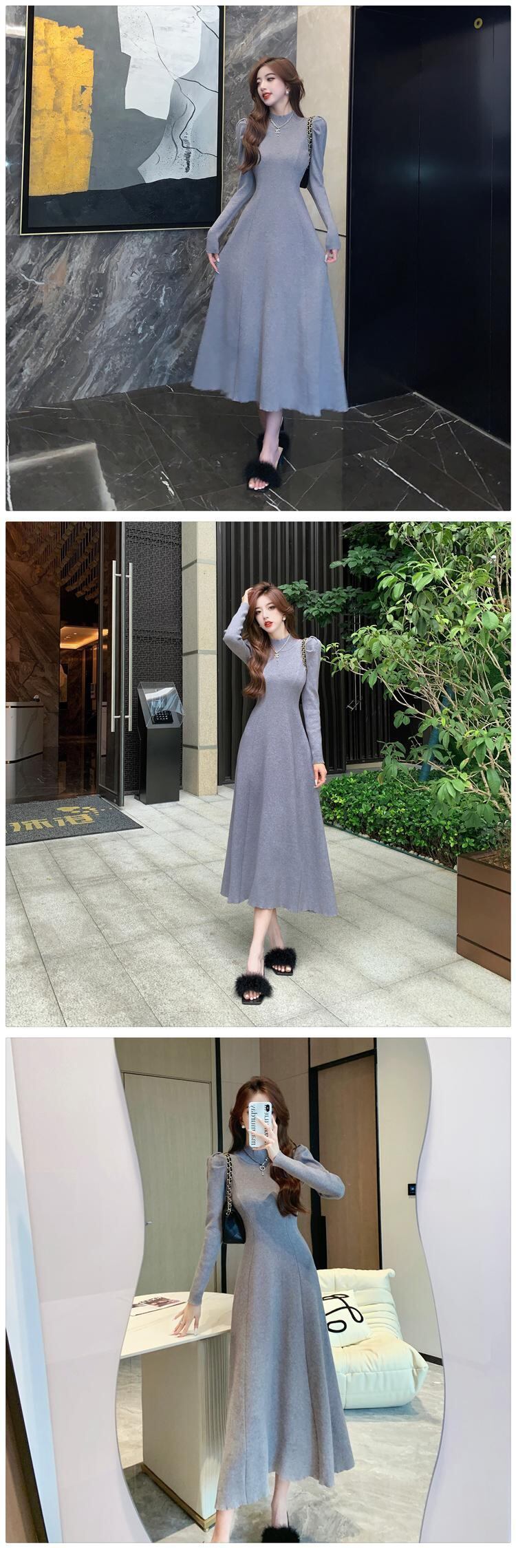 女性ニットセータードレスミディロングドレス春秋ストリートドレスローブ スプリング 春物 mes41357979687