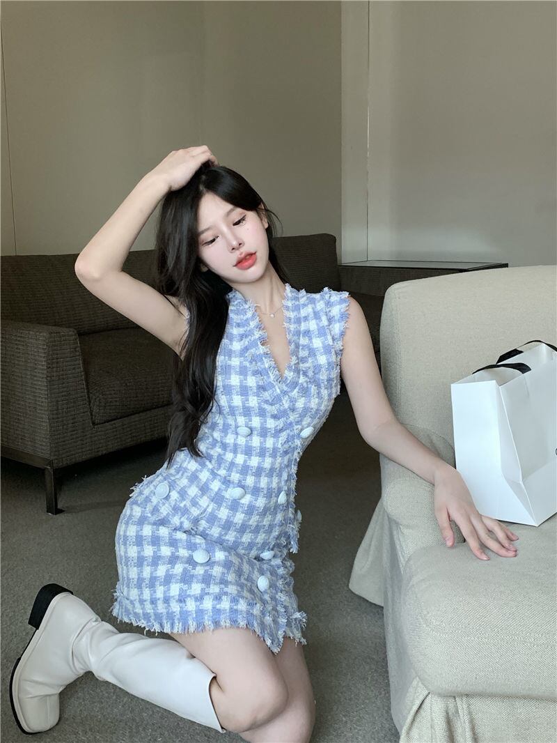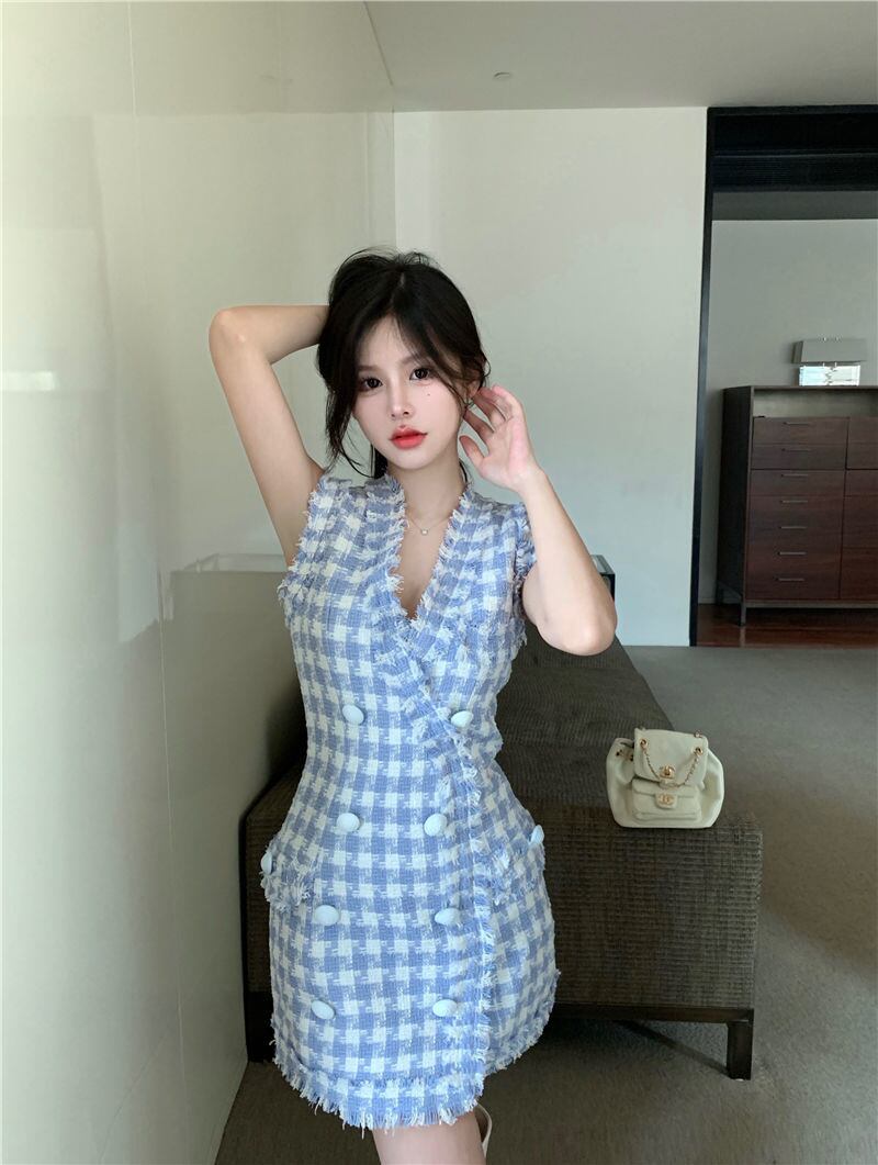 小さな香りツイードドレス女性フレンチウールサマードレスパーティー Vestidos 夏物 mes95764198696