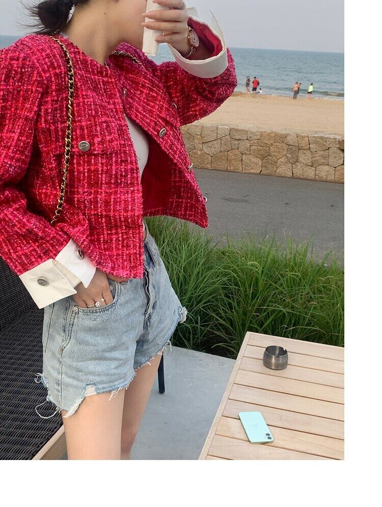 秋冬スモールフレグランスツイードジャケットコート女性フレンチウールコートスウィートスリムショート生き抜くクロップトップ 大人ガーリー キュート カジュアル オータム 秋物 ウィンター 冬物 mes64992163484