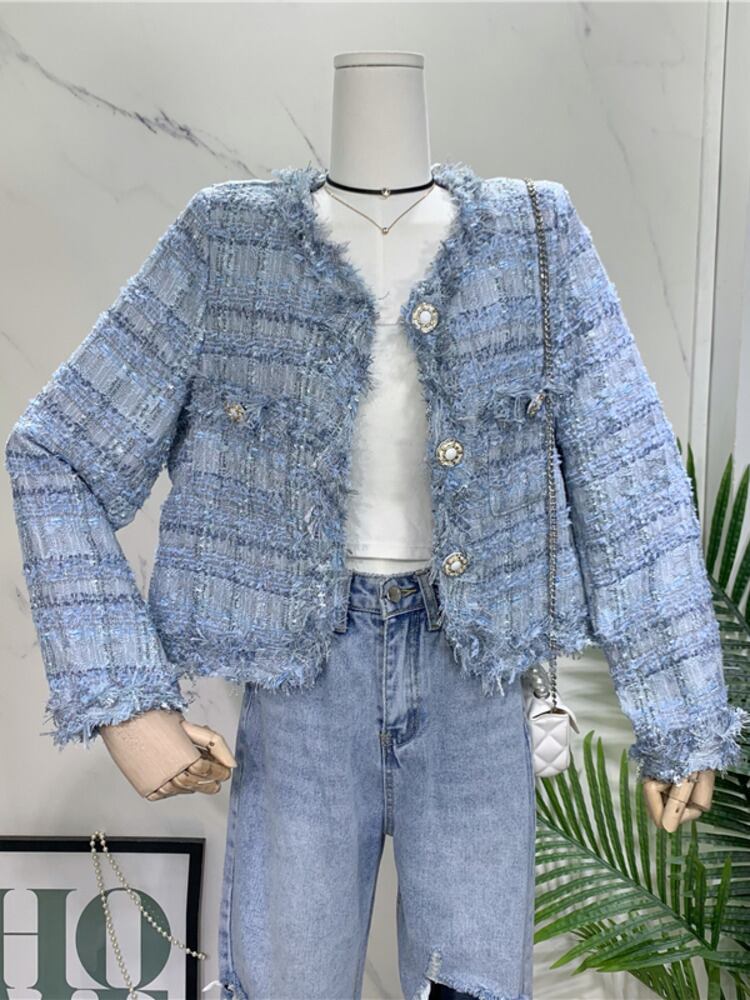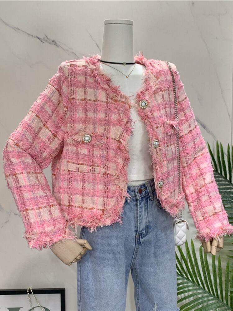秋冬フランス Casaco Feminino チェック柄ウールツイードジャケットコート女性の長袖小さな香り生き抜く ロング オータム 秋物 ウィンター 冬物 mes48641990247