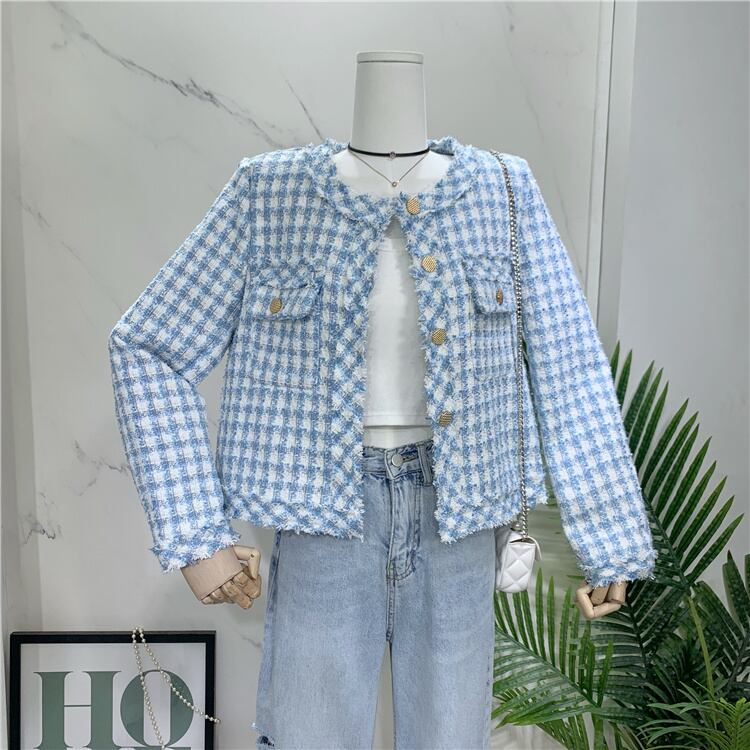 シックなスモールフレグランスツイードウールジャケットコート女性秋冬シングルブレストチェック柄生き抜く オータム 秋物 ウィンター 冬物 mes89156073774