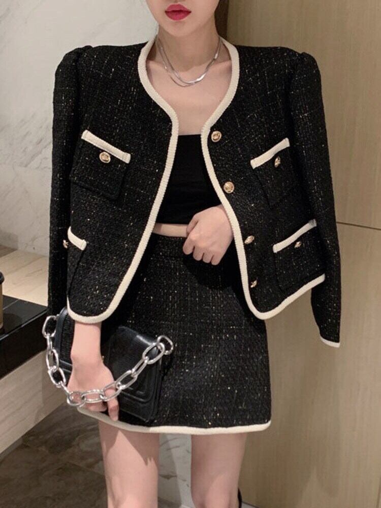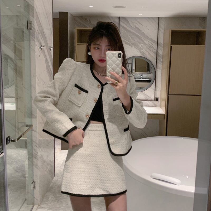 秋冬スモールフレグランツツイード 2 点セット女性ショートジャケットコート + スカートスーツフレンチツーピース衣装 オータム 秋物 ウィンター 冬物 mes58554928054