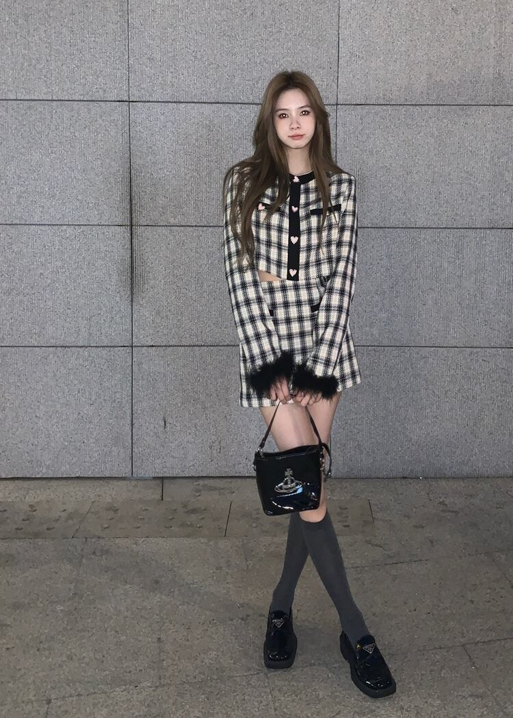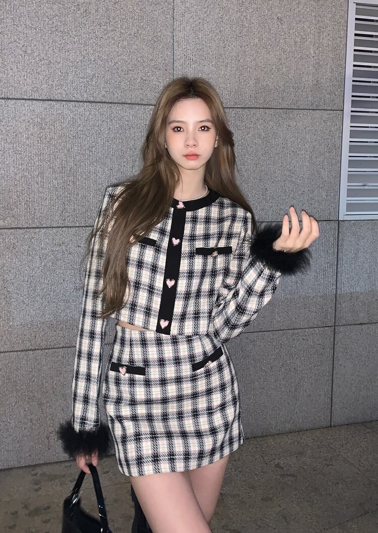 小さなフレグランス ツイード 2 点セット女性ショート ジャケット コート + スカート セット秋冬ツーピース スーツ ウィンター 冬物 mes3466648321