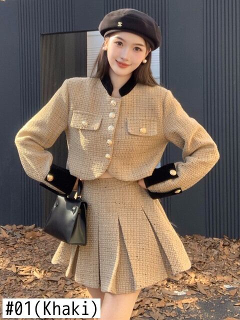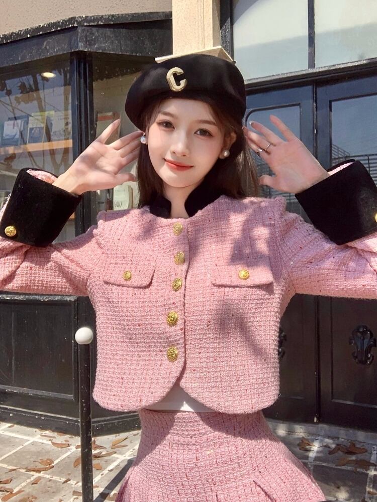小さなフレグランス ツイード 2 点セット女性衣装甘いショート ジャケット コート + スカート ツー ピース スーツ 大人ガーリー スウィート キュート カジュアル mes27749231390