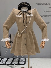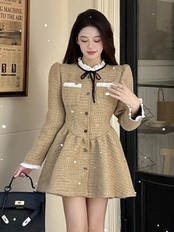 フレンチスモールフレグランスツイードドレス女性の高級スリムウエストパーティードレスミニ Vestidos mes34652575644