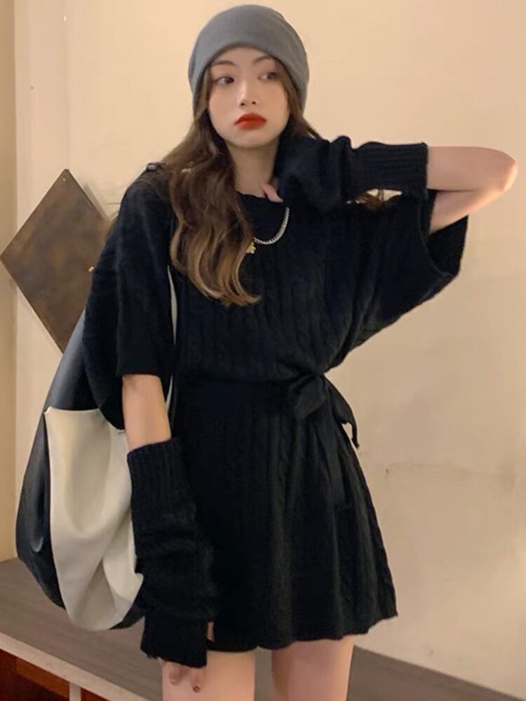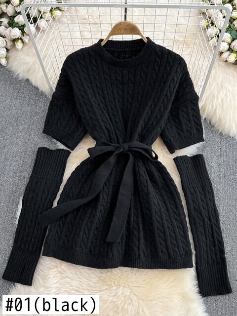 秋冬怠惰なツイストニットセータードレス女性プルオーバールースミニドレスローブ Vestidos オータム 秋物 ウィンター 冬物 mes32865531775