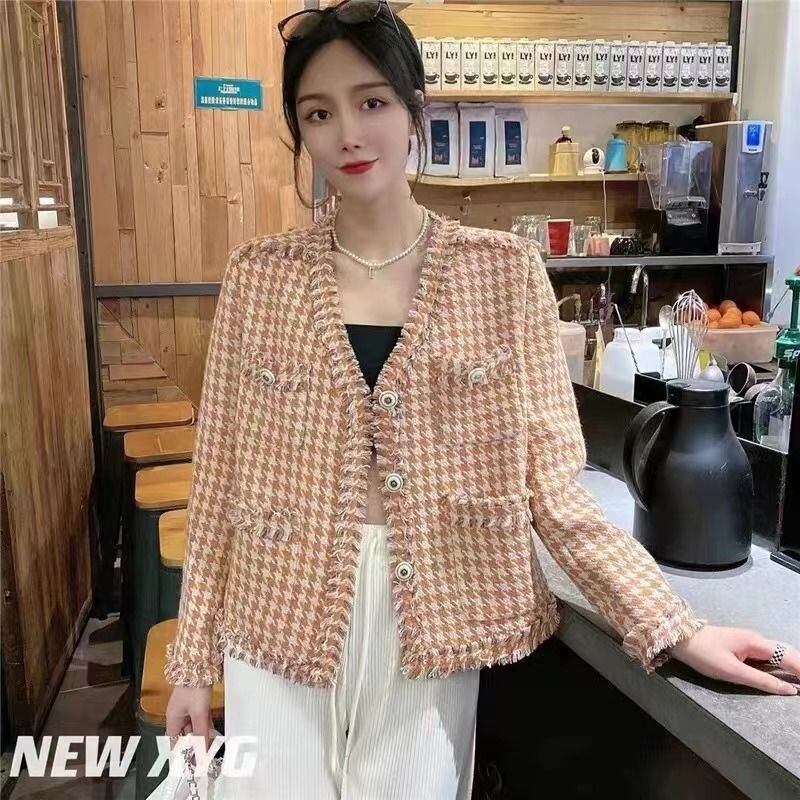 フレンチスモールフレグランスツイードウールジャケットコート女性秋冬シングルブレストチェック柄生き抜く ウィンター 冬物 mes25268413439