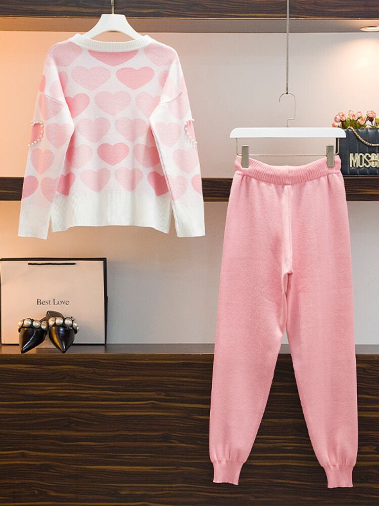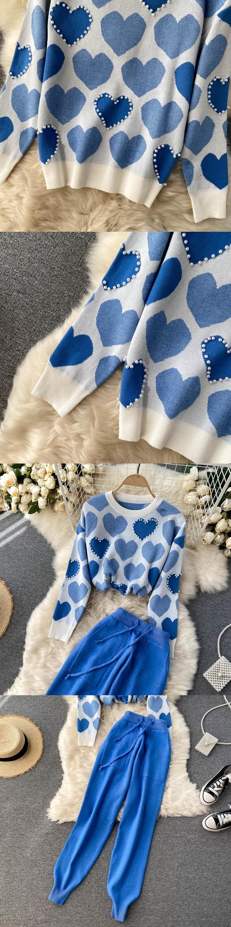 ニット 2 点セットシックなニット ビーズ セーター プルオーバー トップ + ハーレム パンツ スーツ トラック スーツ女性 2 点セット mes70043501040