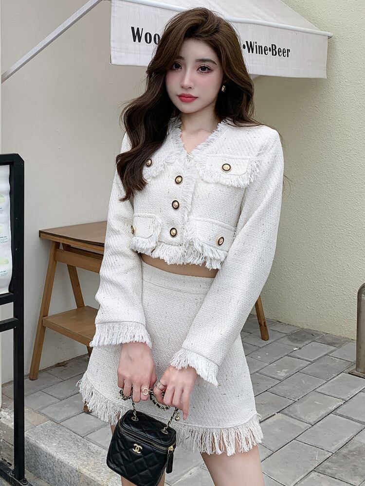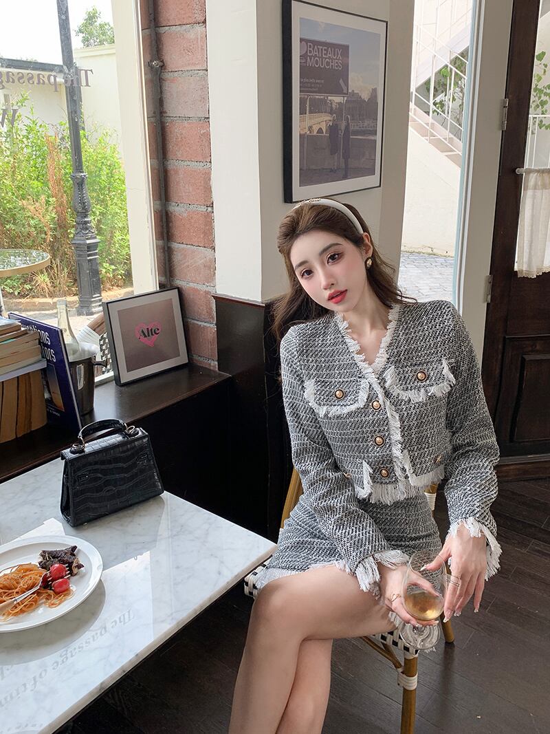 Tel Small Fragrance 2点セット レディース 衣装 長袖 ショートジャケット コート + ミニスカート スーツ ロング mes87896748238