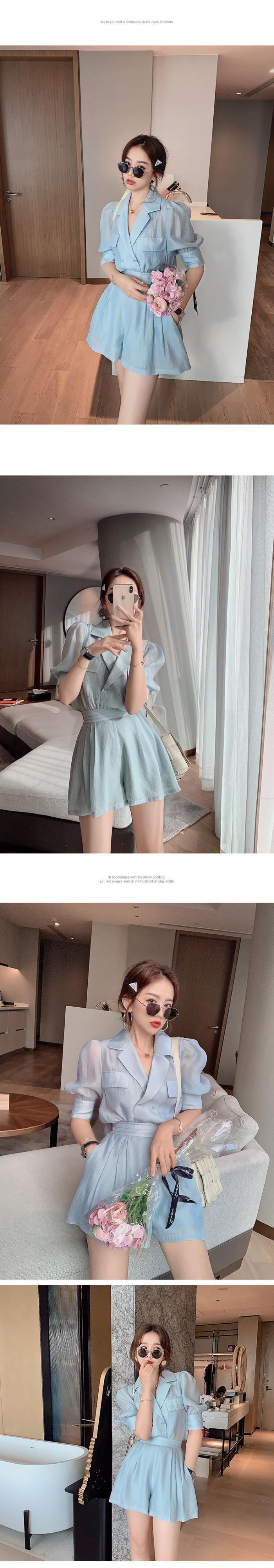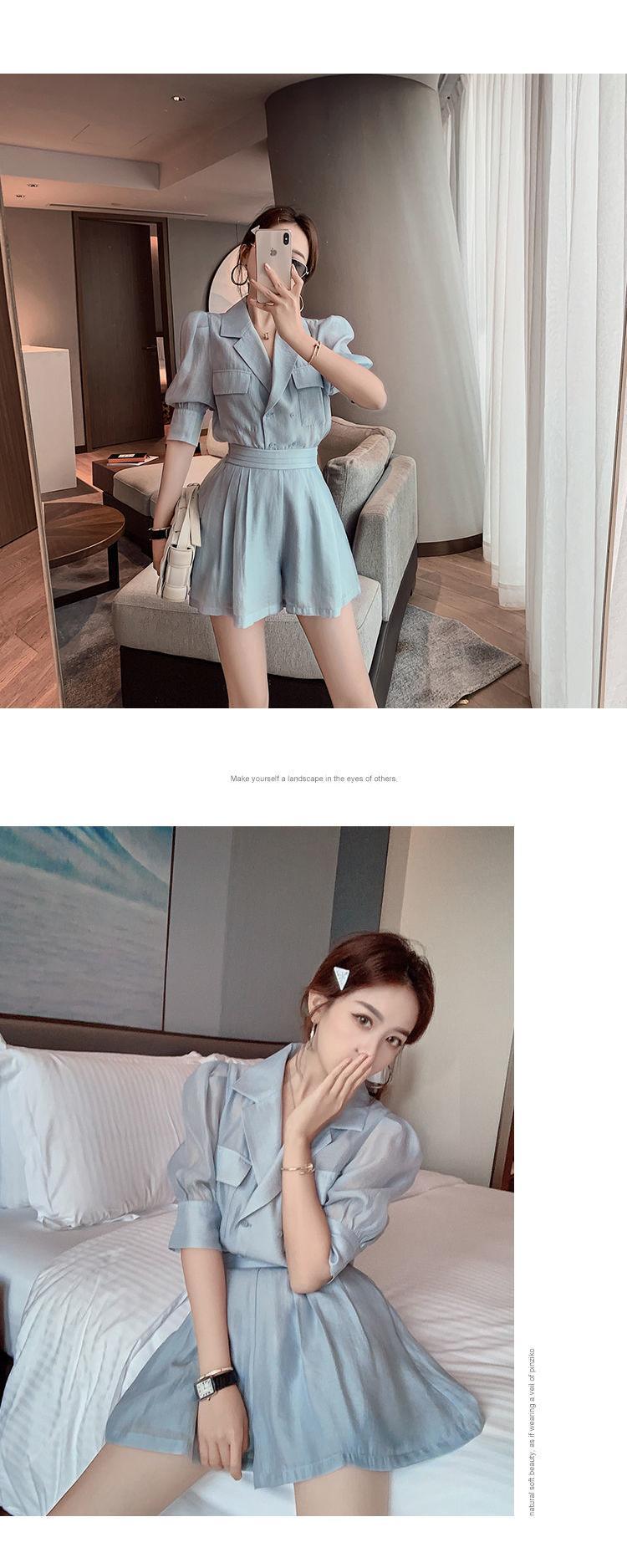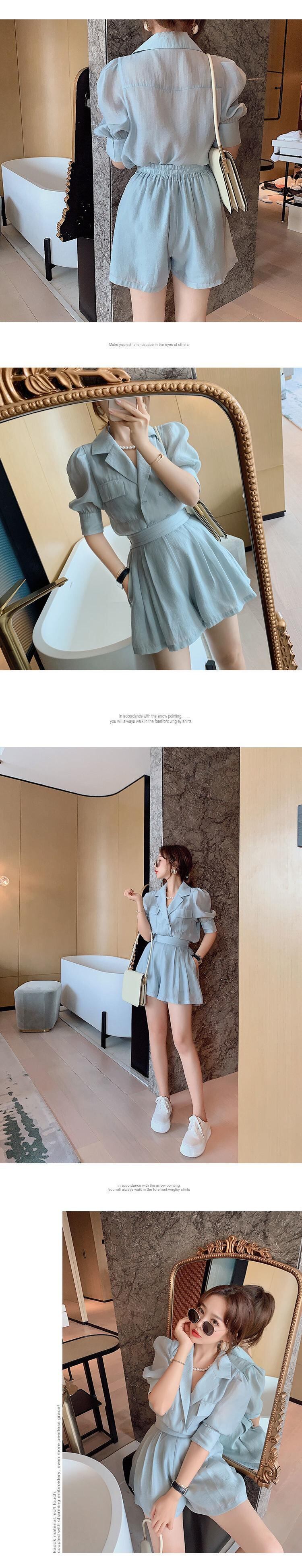 2 点セット女性バブルスリーブシャツ Bouse トップス & ウエストワイドレッグショーツスーツ夏 2 ピースパンツセット サマー 夏物 ブルマー ワイドパンツ mes26156064825