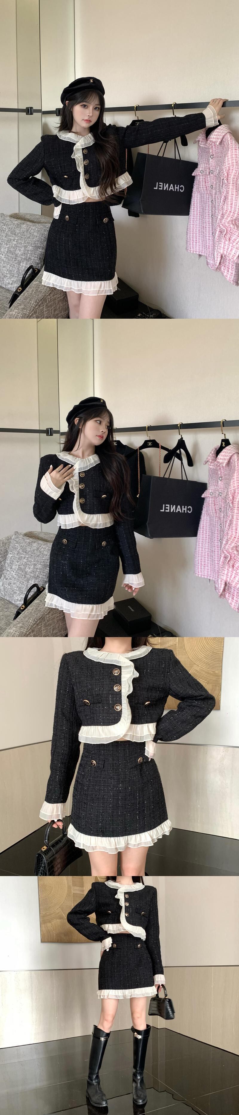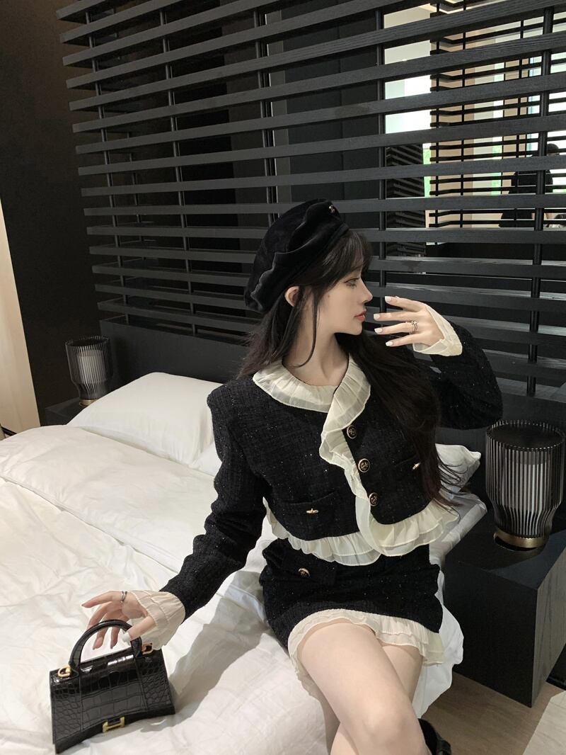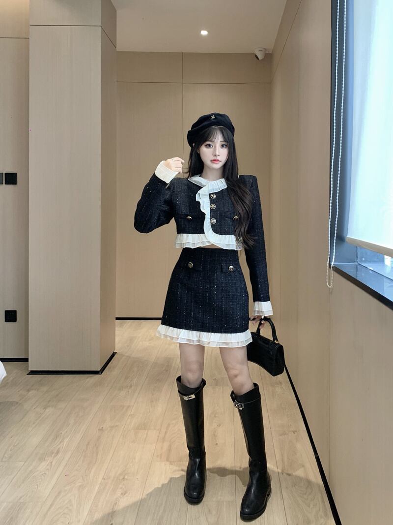 スモールフレグランスツーピースセットレディースショートジャケットコート+ボディコンスカートセット秋冬2ピーススーツ ウィンター 冬物 mes42455842724