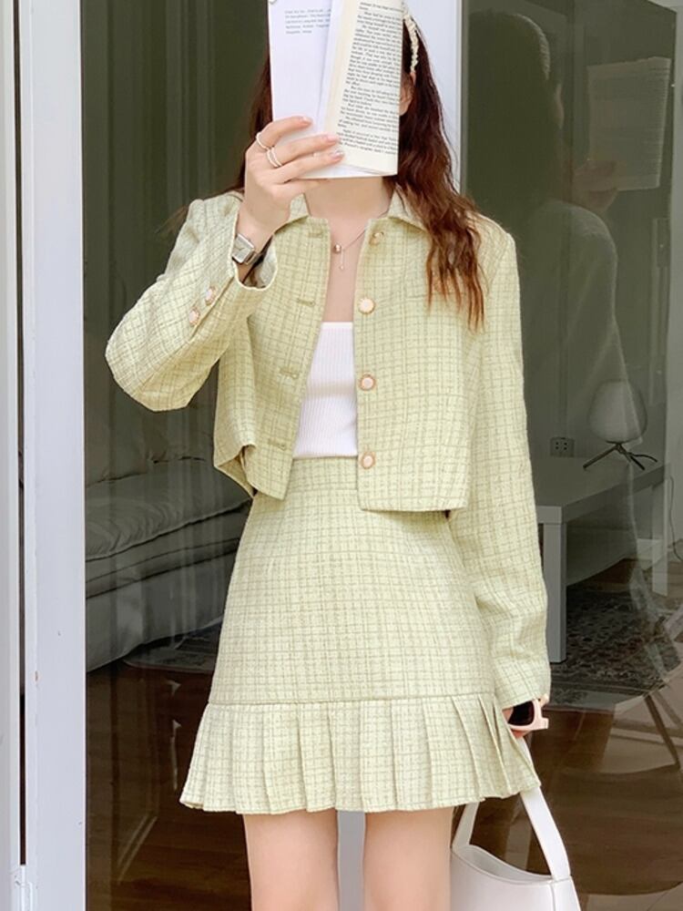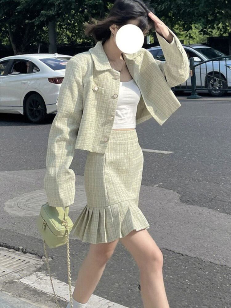 秋冬新作ツイード 2 点セット レディース outifits ツイード ジャケット コート + ミニ スカート セット conjuntos デ ファルダ アンサンブル ファム オータム 秋物 ウィンター 冬物 フェミニン mes35887761477