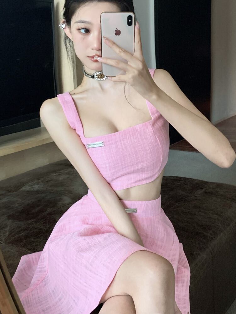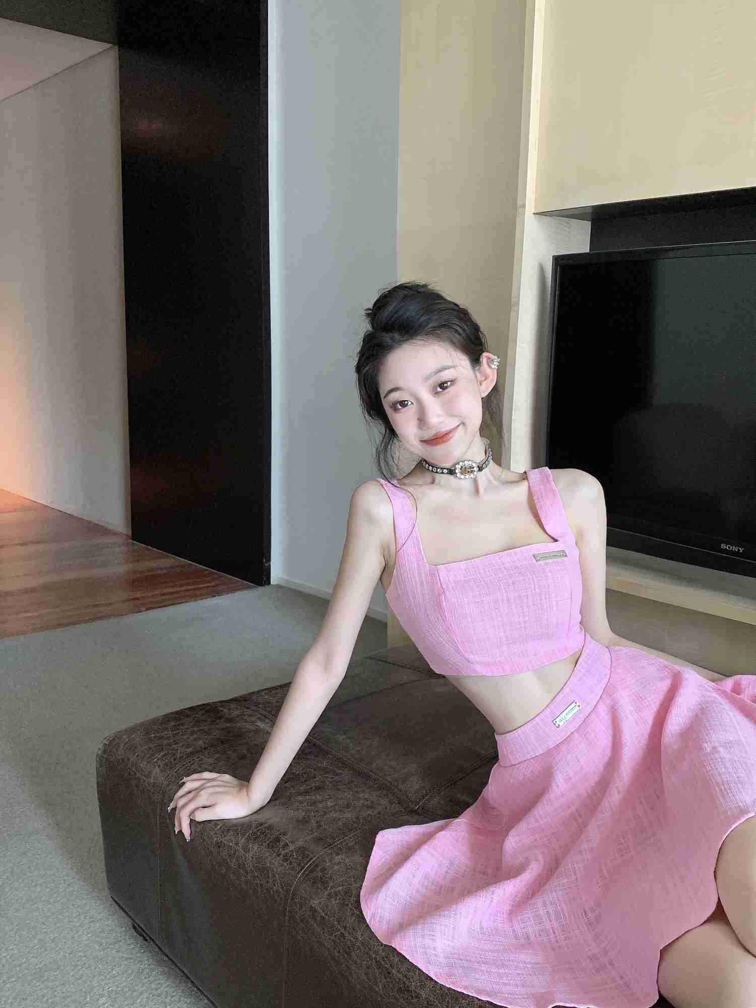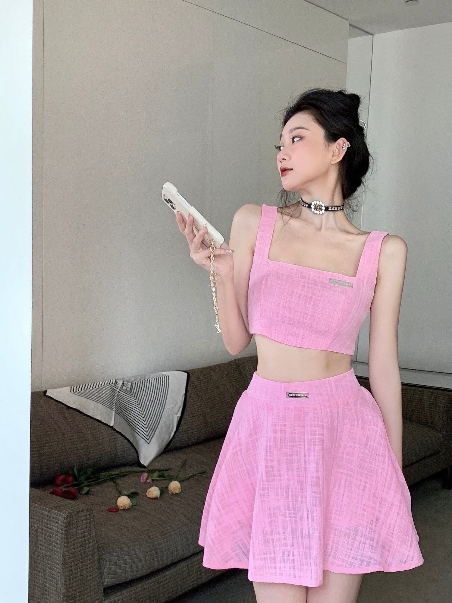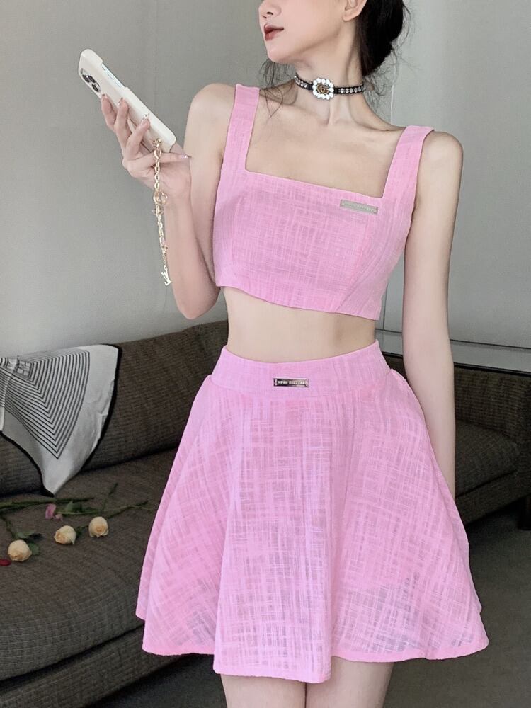 小さな香りツーピースセット女性ベストクロップトップ + ミニスカートセット甘い夏セットレディース衣装 大人ガーリー スウィート キュート カジュアル サマー 夏物 mes63412978183