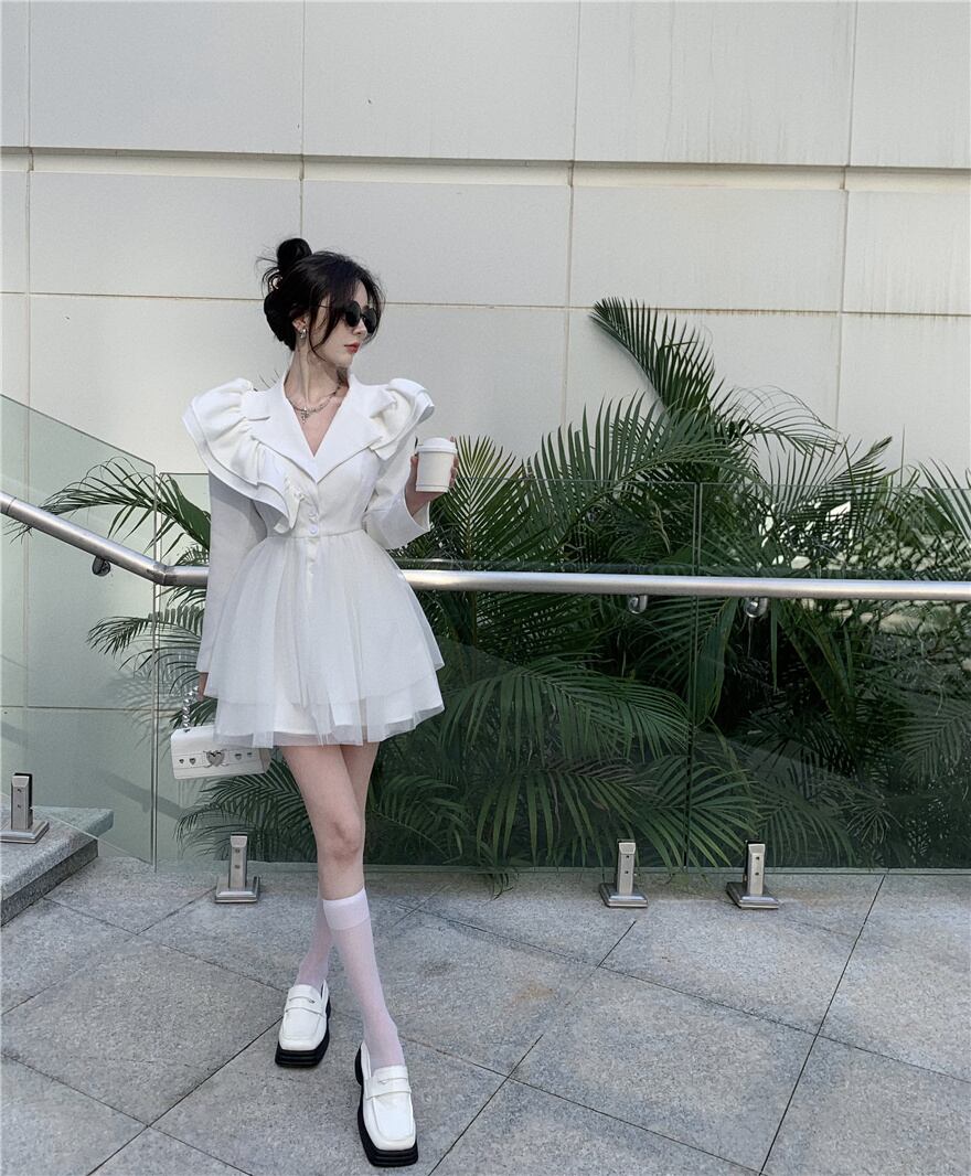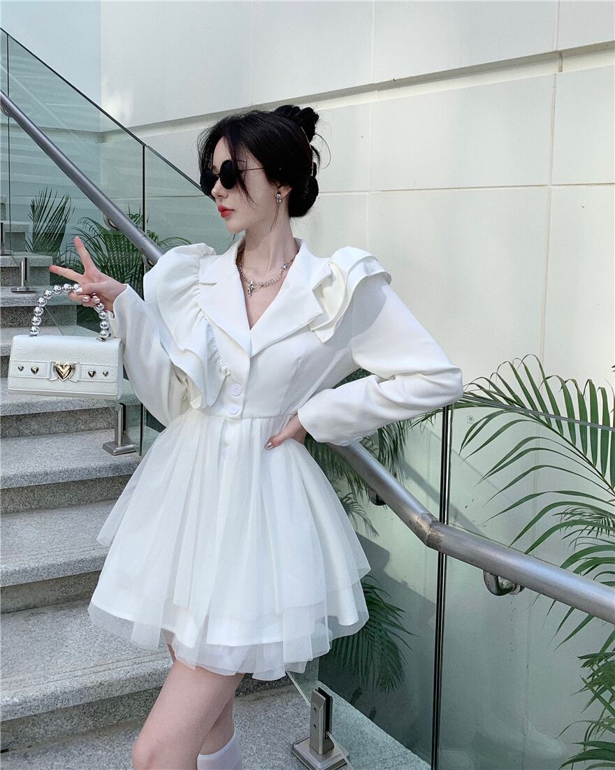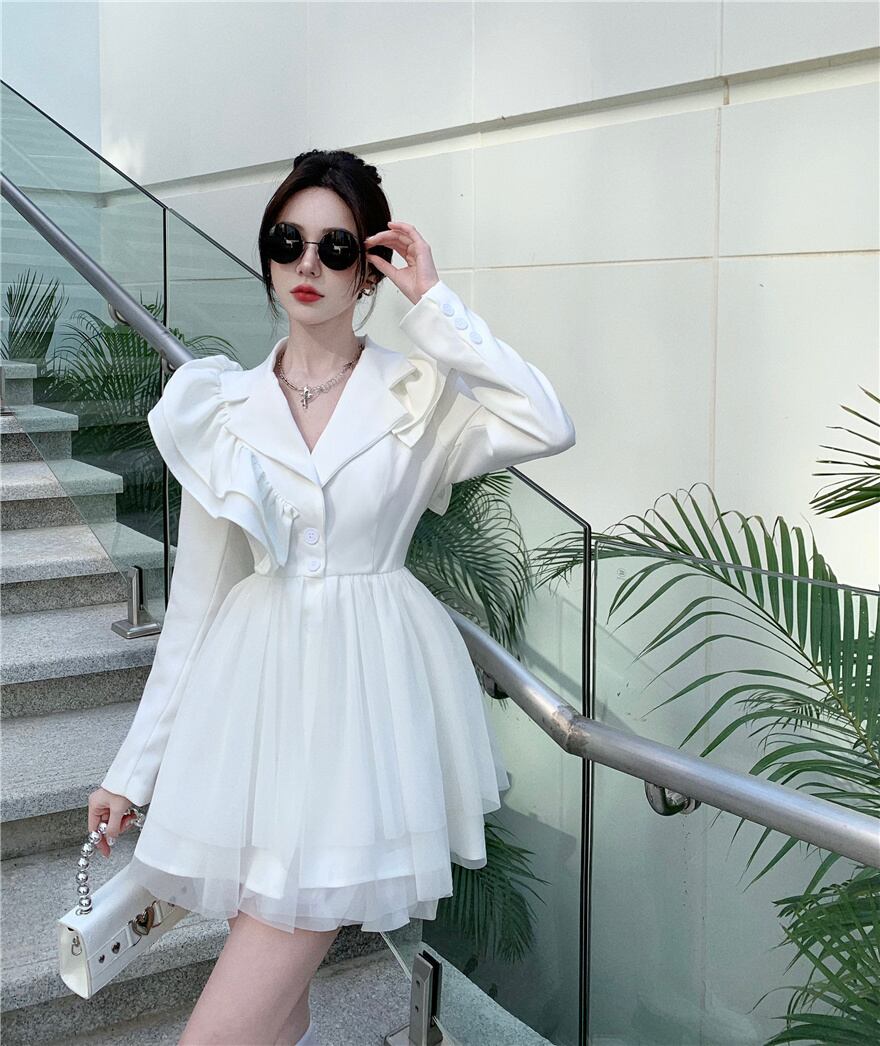 春の甘い長袖ミニドレス女性 OL シングルブレストスーツドレス甘いローブ Vestidos ロング 大人ガーリー スウィート キュート カジュアル スプリング 春物 mes83152232860