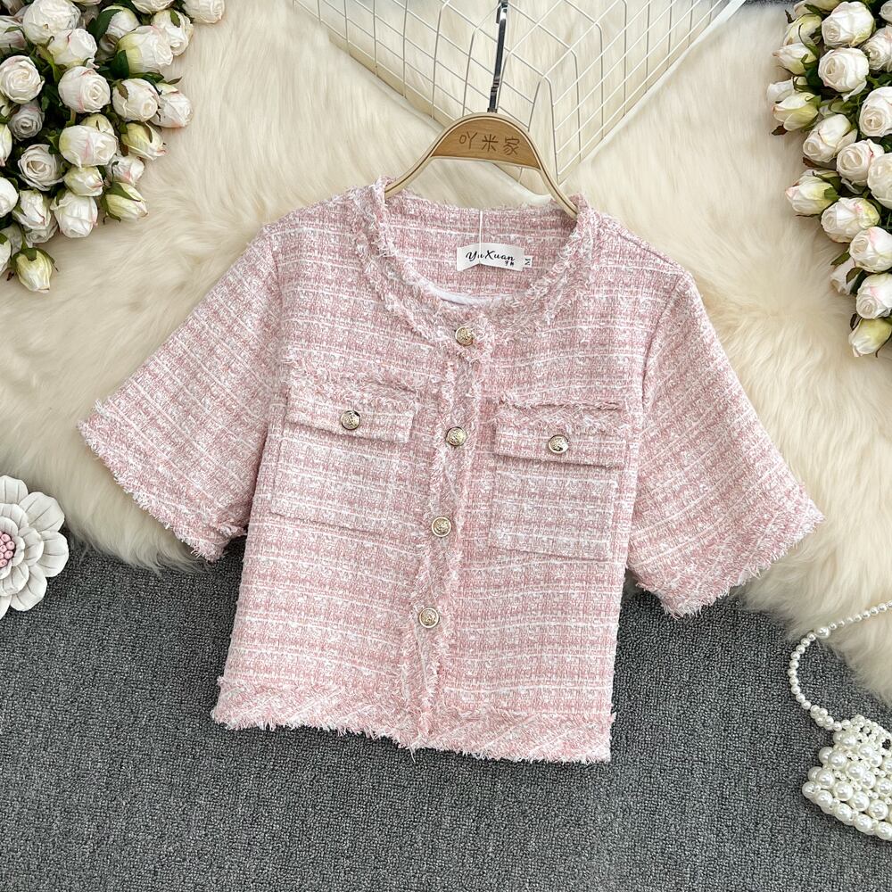 夏フレンチスモールフレグランスショートジャケットコート女性高級ツイードコート生き抜くチャケータ サマー 夏物 mes98452811864