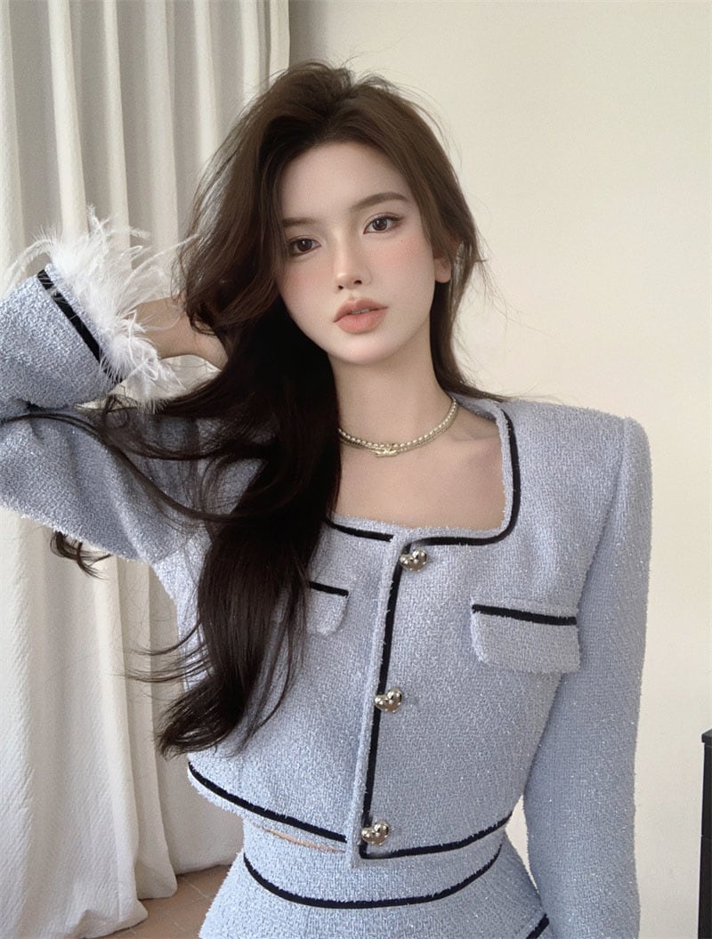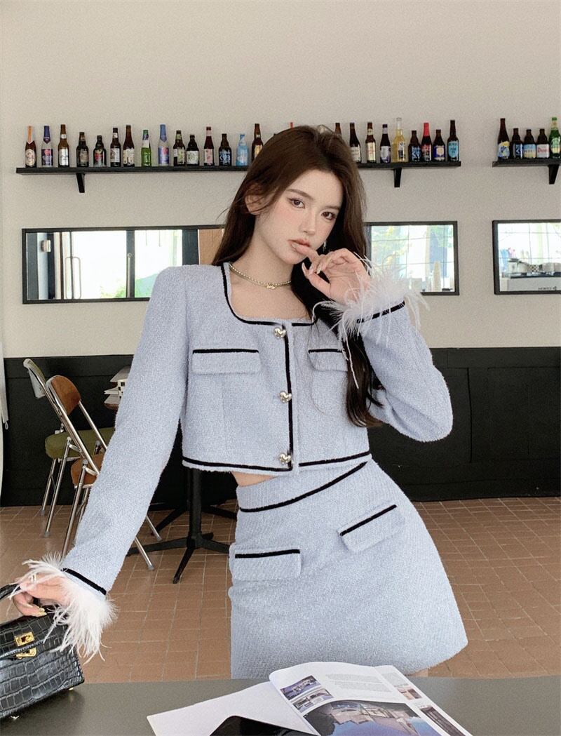小さなフレグランス 2 点セット女性衣装高級フェザー ショート ジャケット コート + ミニ スカート セット ツー ピース スーツ mes38684025088