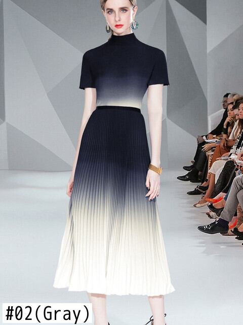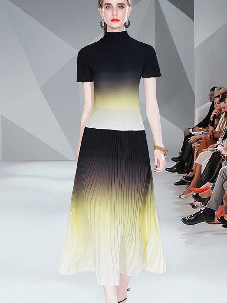 ストリート ランウェイ プリント ツー ピース セット女性半袖トップ & プリーツ ロング スカート セット夏 2 ピース衣装 ショート ハーフスリーブ サマー 夏物 mes36921237194
