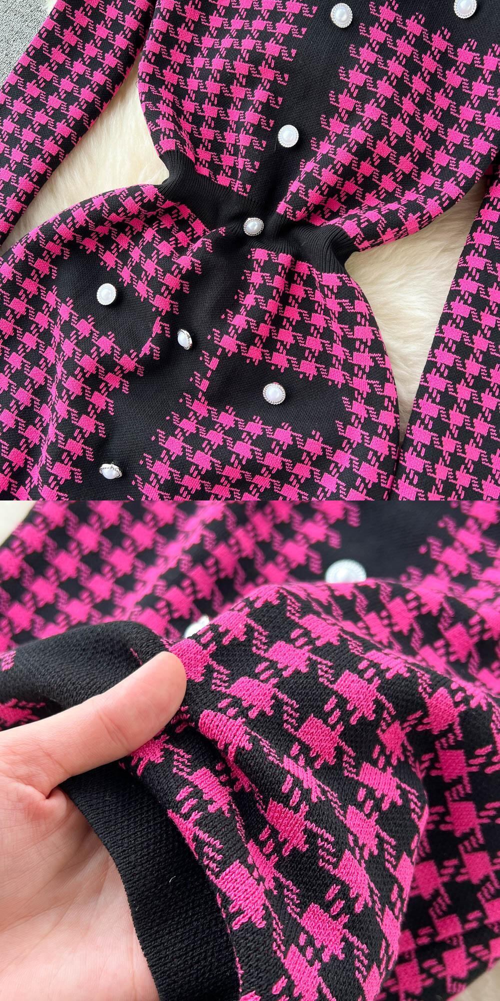 秋冬千鳥格子ニットセータードレス女性長袖ドレスローブ Vestidos ロング オータム 秋物 ウィンター 冬物 mes43911820895