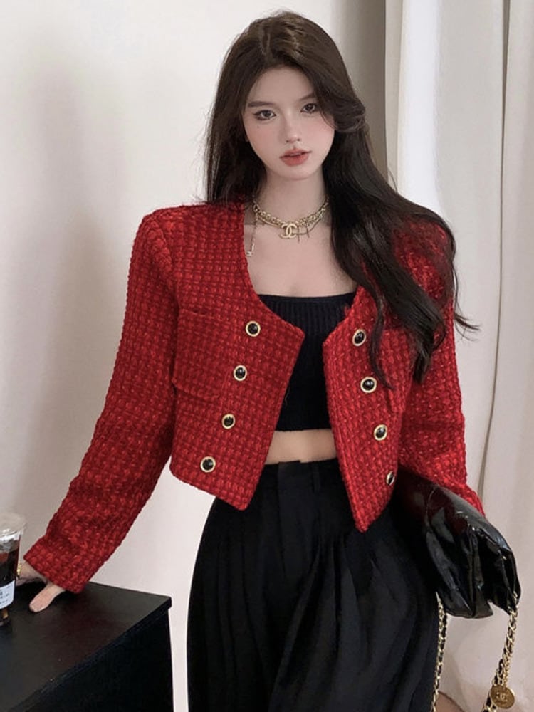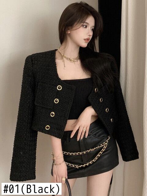 スウィート スモール フレグランス ツイード ジャケット レディース ラグジュアリー ランウェイ ショート コート アウター チャケータ 大人ガーリー キュート カジュアル mes97783336915