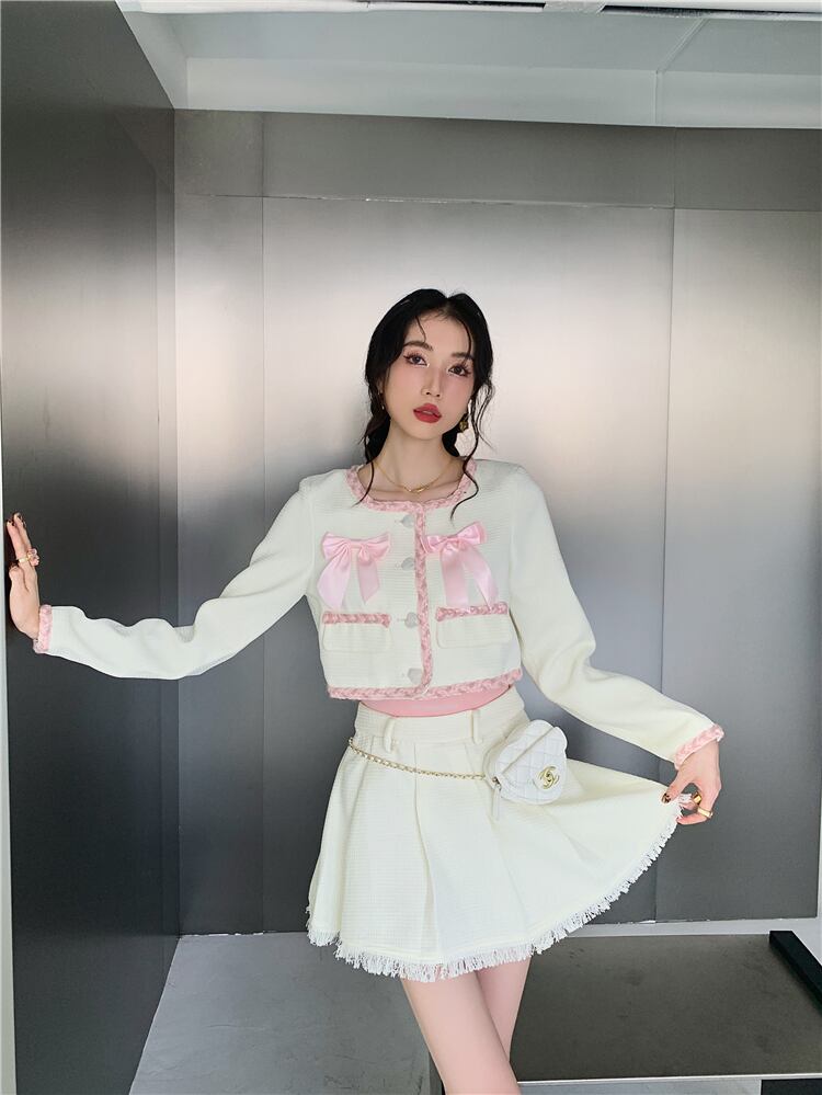 甘い 2 点セット女性衣装ショート ジャケット コート クロップ トップ + プリーツ スカート 2 点セット 大人ガーリー スウィート キュート カジュアル mes47119903271