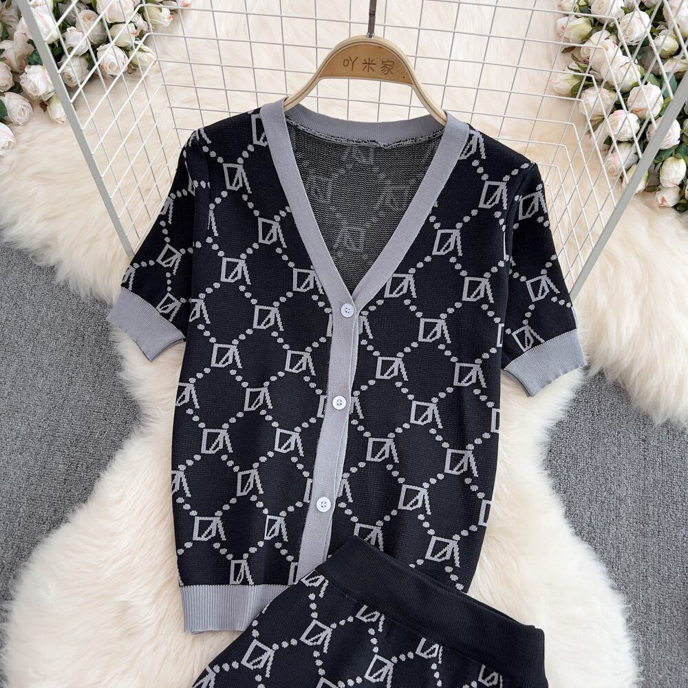 小さな香りフレンチニット 2 点セット女性ジャンパーカーディガントップス + スカートスーツ夏 2 点セット サマー 夏物 mes53929855070