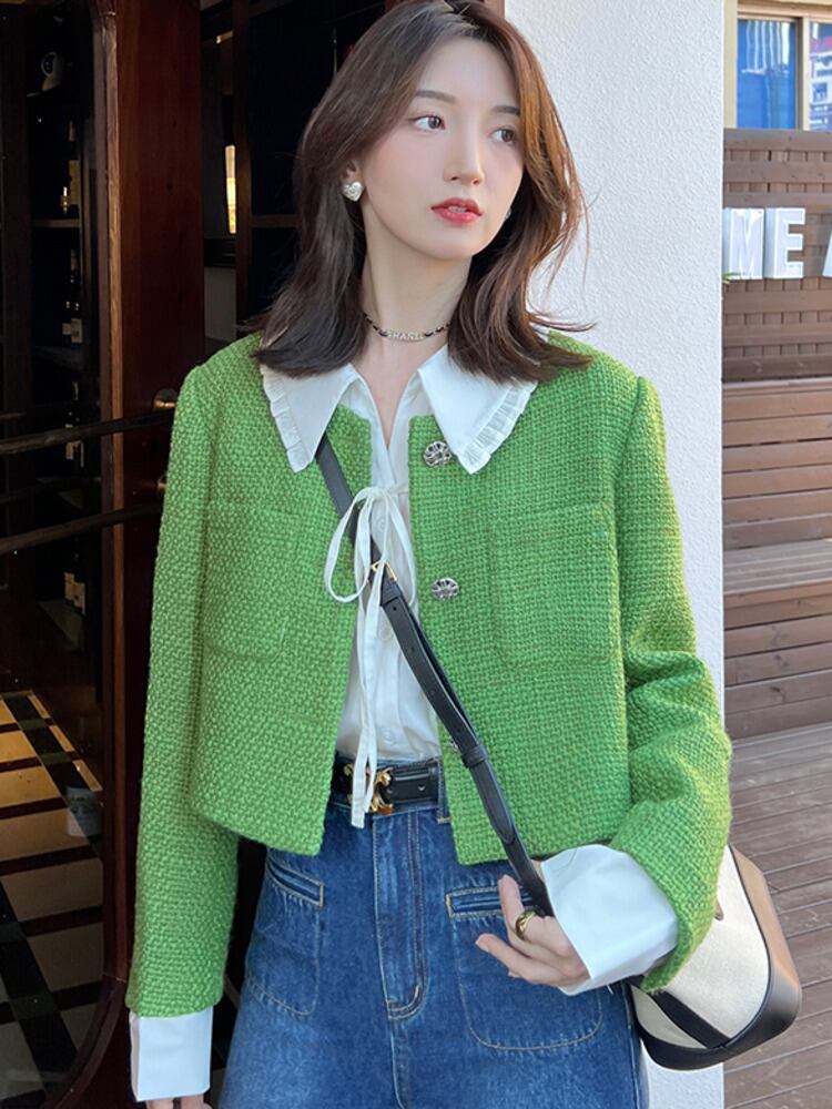秋冬スモールフレグランスツイードジャケットコート女性ヨーロピアンスタイルスリムショートコート甘い生き抜くトップス 大人ガーリー スウィート キュート カジュアル ウィンター 冬物 mes15999349122