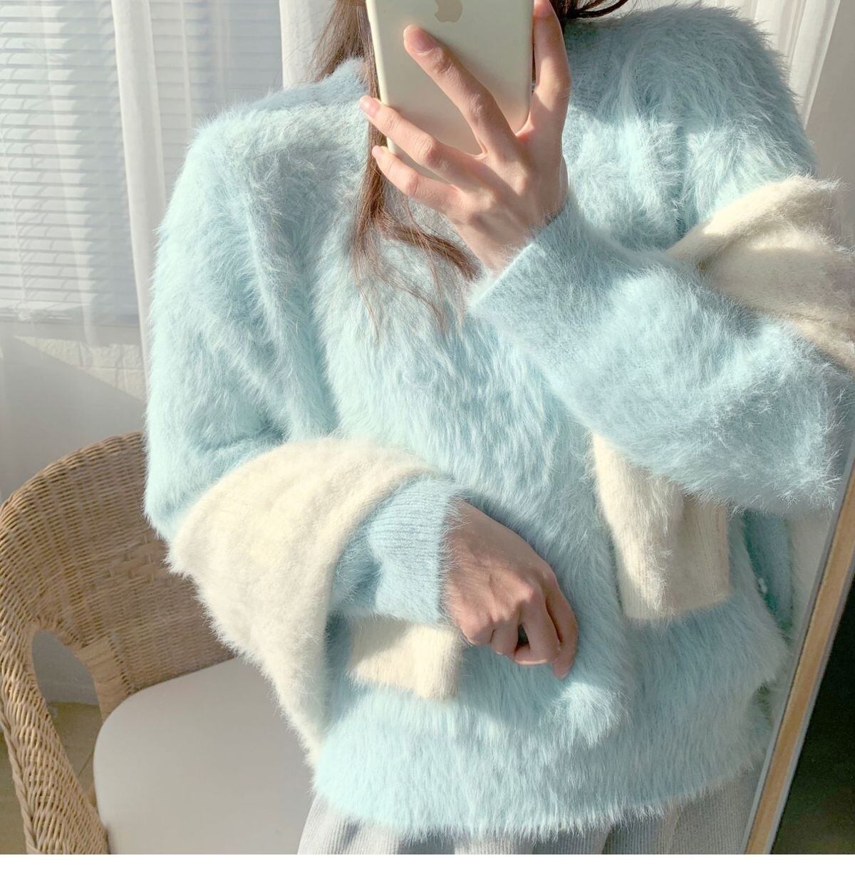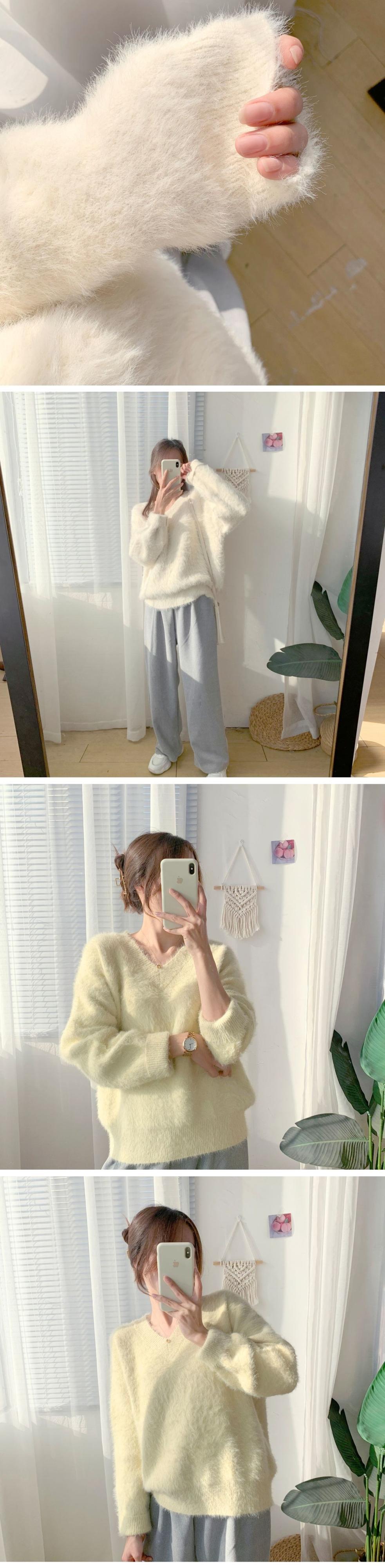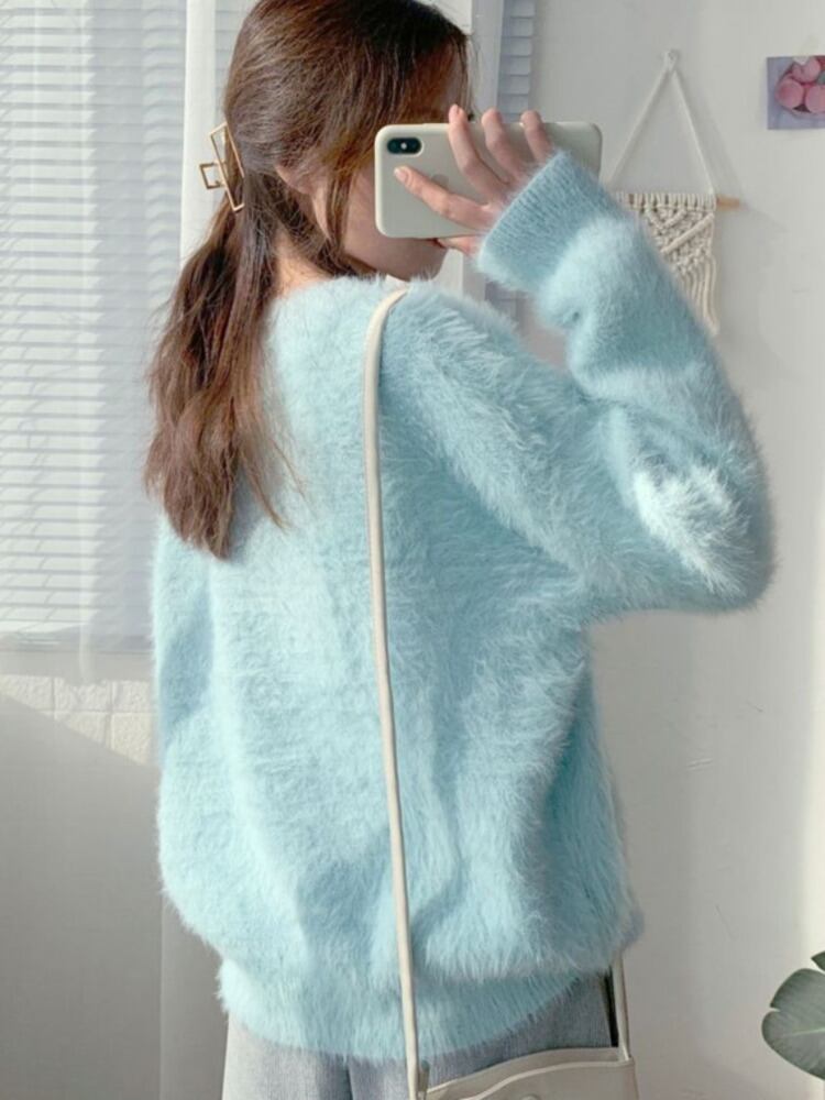 秋冬肥厚ミンクセータープルオーバー女性の怠惰な緩いモヘア V ネックプル長袖トップ ロング オータム 秋物 ウィンター 冬物 Vネック mes48457677672