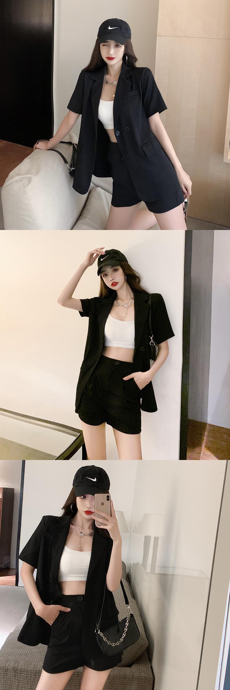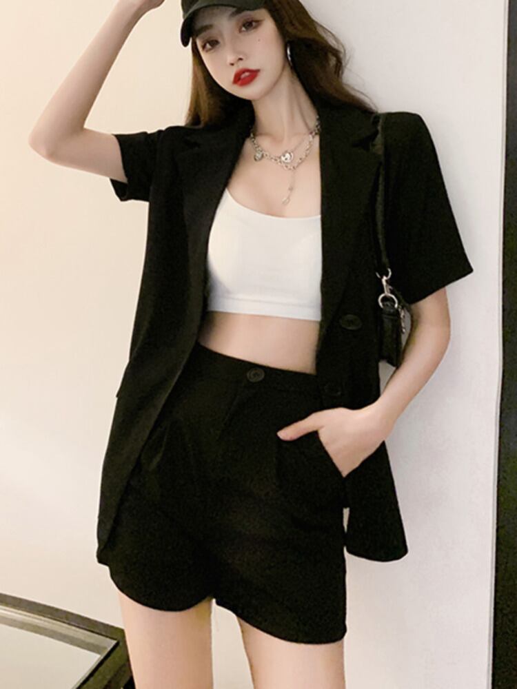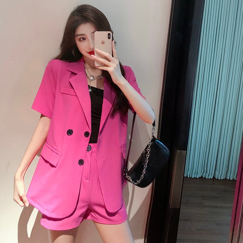 ルーズ 2 点セット女性半袖ブレザー コート + ショーツ スーツ オールマッチ パンツ スーツ甘い 2 点セット ショート ハーフスリーブ 大人ガーリー スウィート キュート カジュアル ブルマー mes52230068965