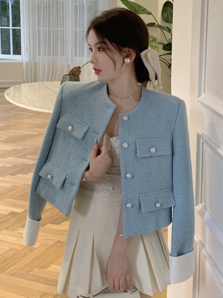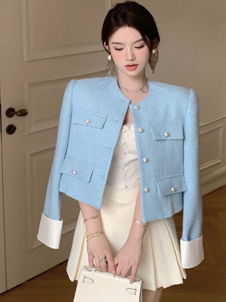 秋冬スウィートツイードジャケット女性豪華な滑走路小さな香りウールコート生き抜く Casacos 大人ガーリー キュート カジュアル オータム 秋物 ウィンター 冬物 mes71512644700