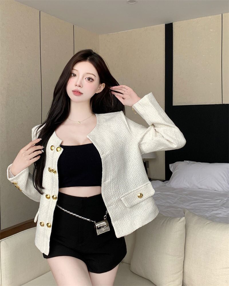 小さなフレグランス ツイード ジャケット コート女性秋冬ストリート コート Casaco ウール生き抜くトップス オータム 秋物 ウィンター 冬物 mes39076465449