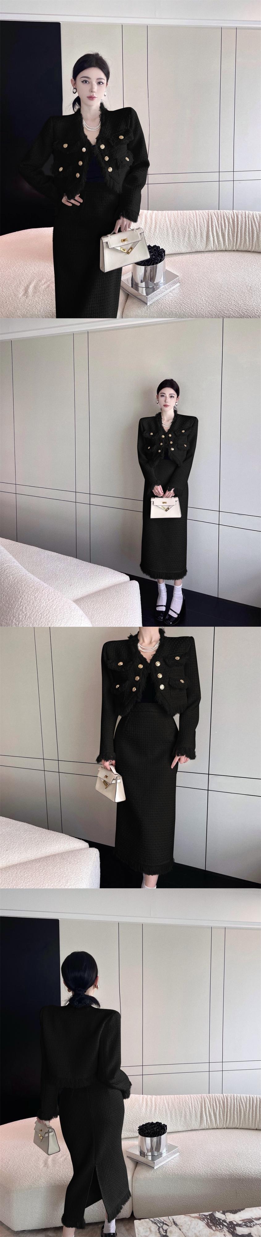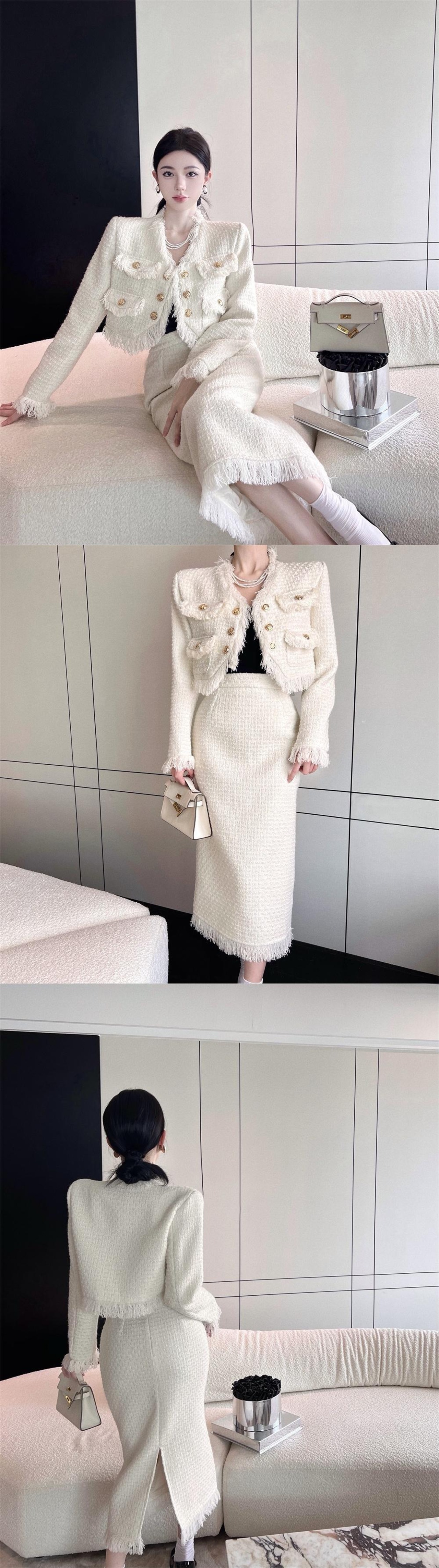 フレンチスモールフレグランスツイードツーピースセット女性衣装フリンジジャケットコート & ロングスカート 2 ピーススーツ mes67177956161