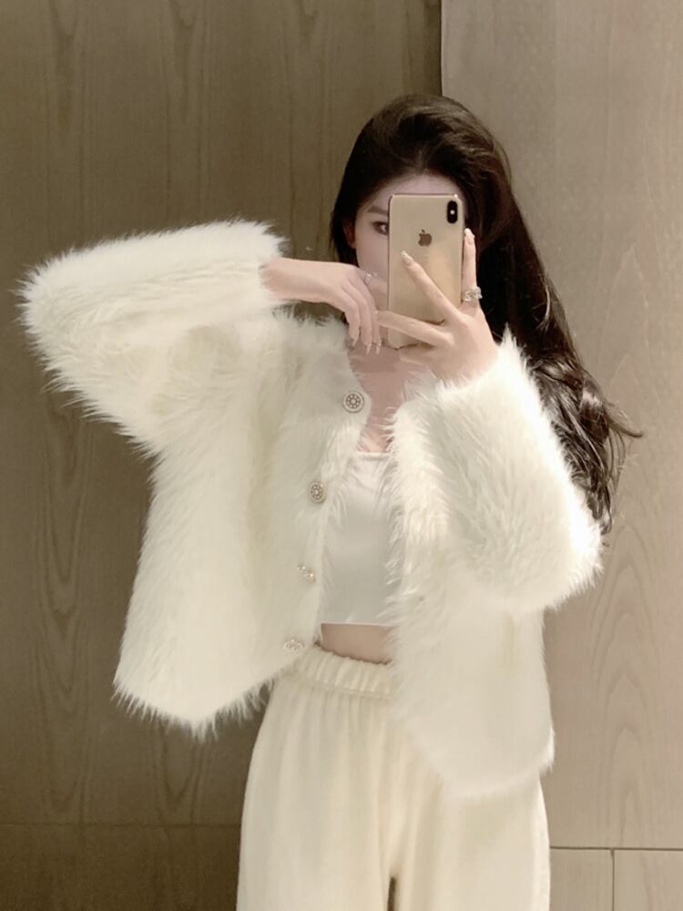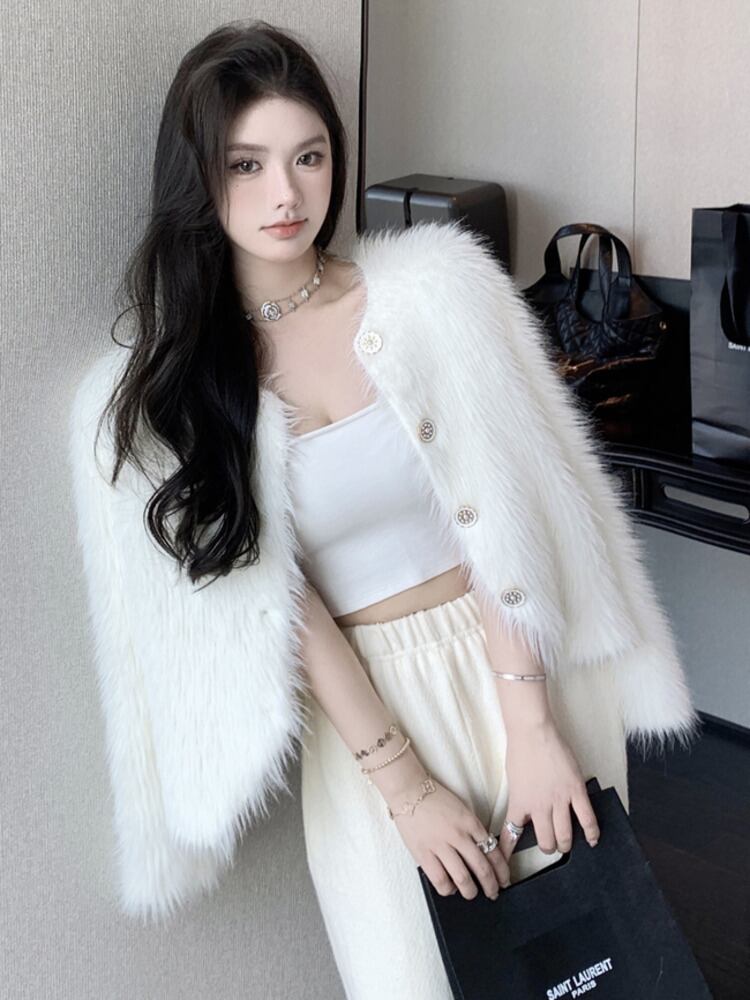 女性の冬のミンクの毛皮のコート無地ストリート シングル ブレスト フェイクファー クロップド ジャケット アウターウェア ウィンター 冬物 ソリッドカラー mes801516077