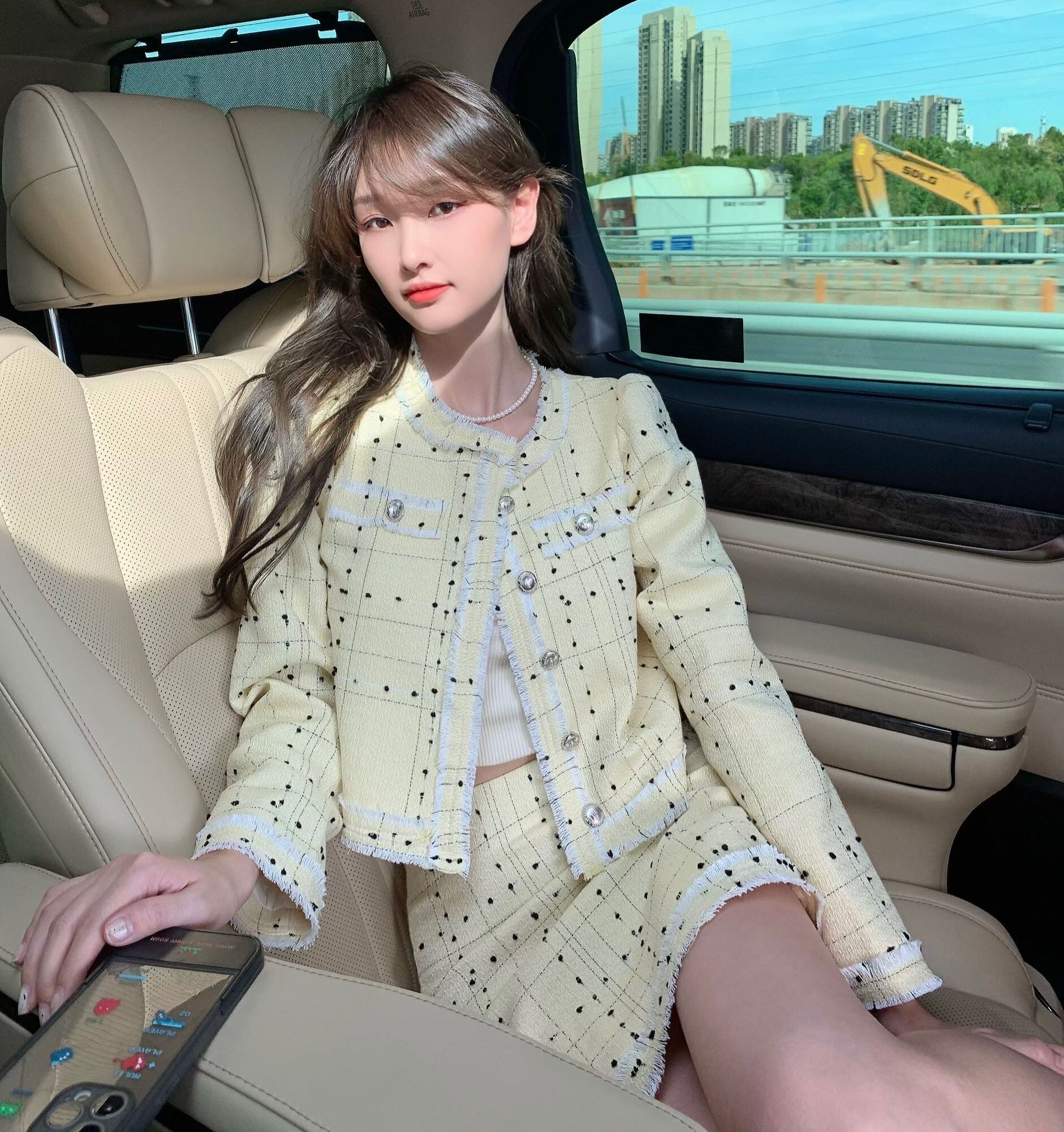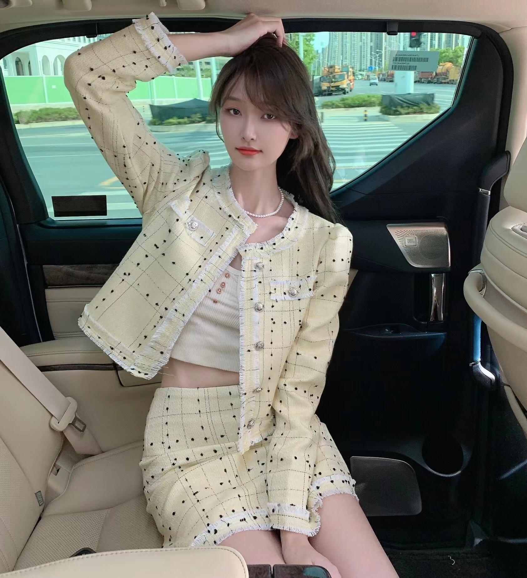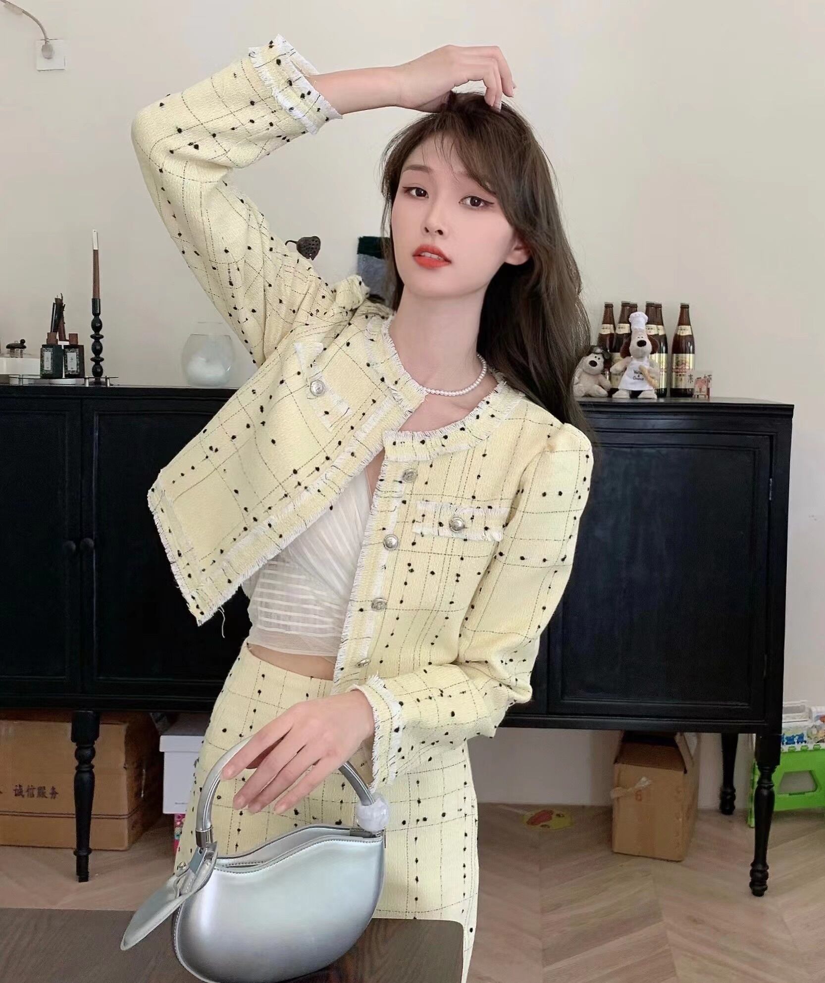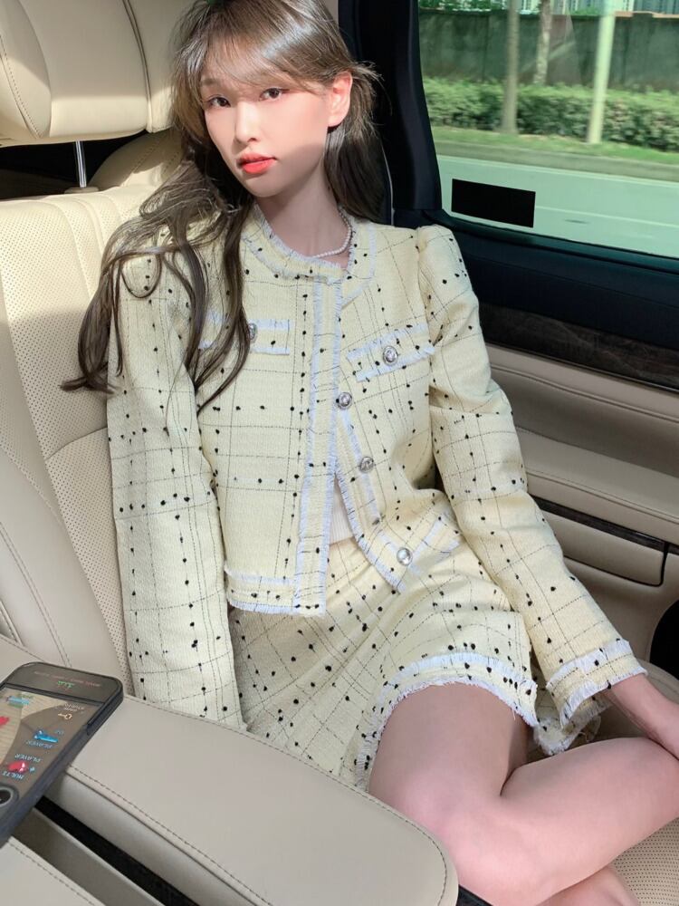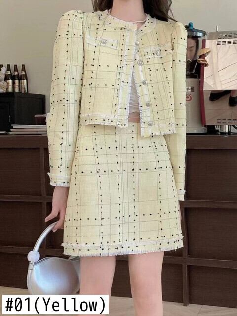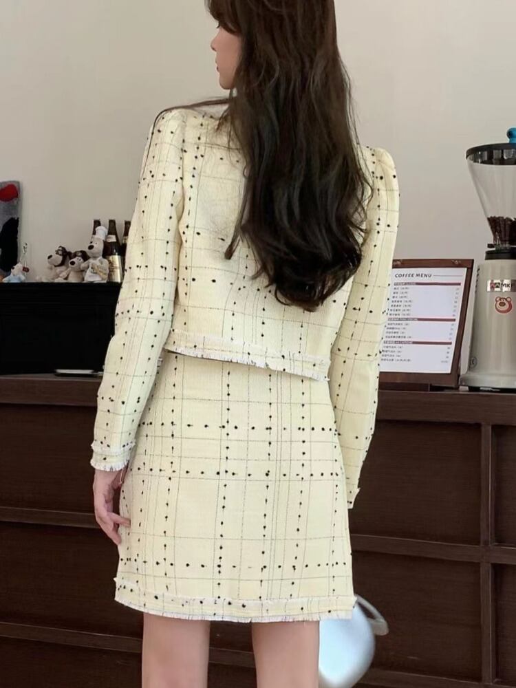 甘い小さな香りツイード 2 点セット女性ショート ジャケット コート & スカート セット秋冬高級 2 ピース スーツ 大人ガーリー スウィート キュート カジュアル オータム 秋物 ウィンター 冬物 mes51520585360