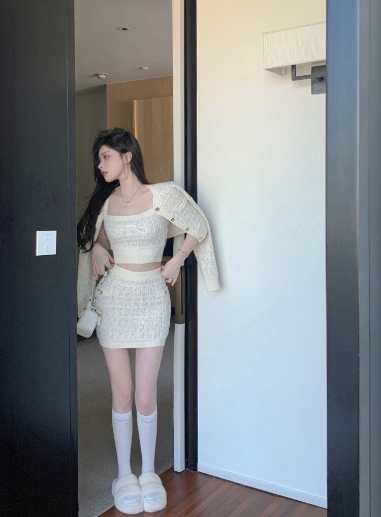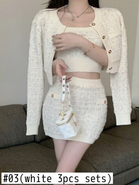 スウィートスリーピースセット女性セーターカーディガン + キャミソール + スカートセットニット 3 個スーツアンサンブル Conjuntos Feminino 大人ガーリー キュート カジュアル mes91376346977
