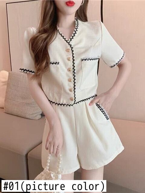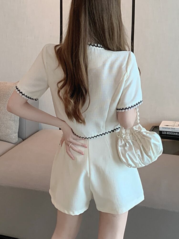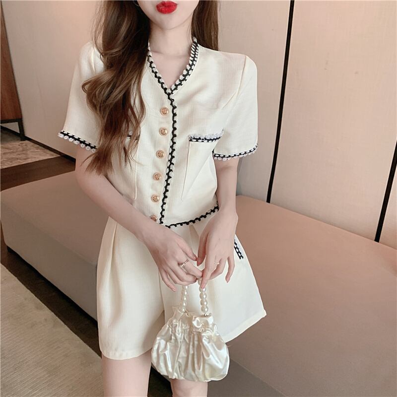 夏のストリート 2 点セット女性ジャケット コート クロップ トップ + ショーツ スーツ甘い小さな香り 2 点セット 大人ガーリー スウィート キュート カジュアル サマー 夏物 ブルマー mes6988132464