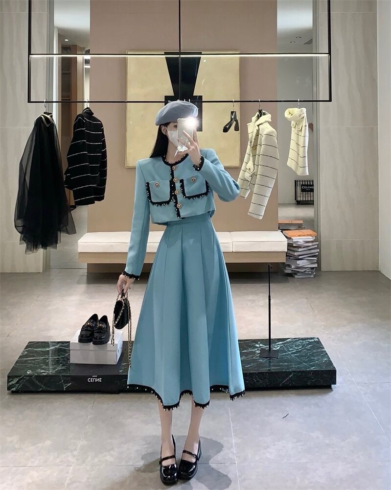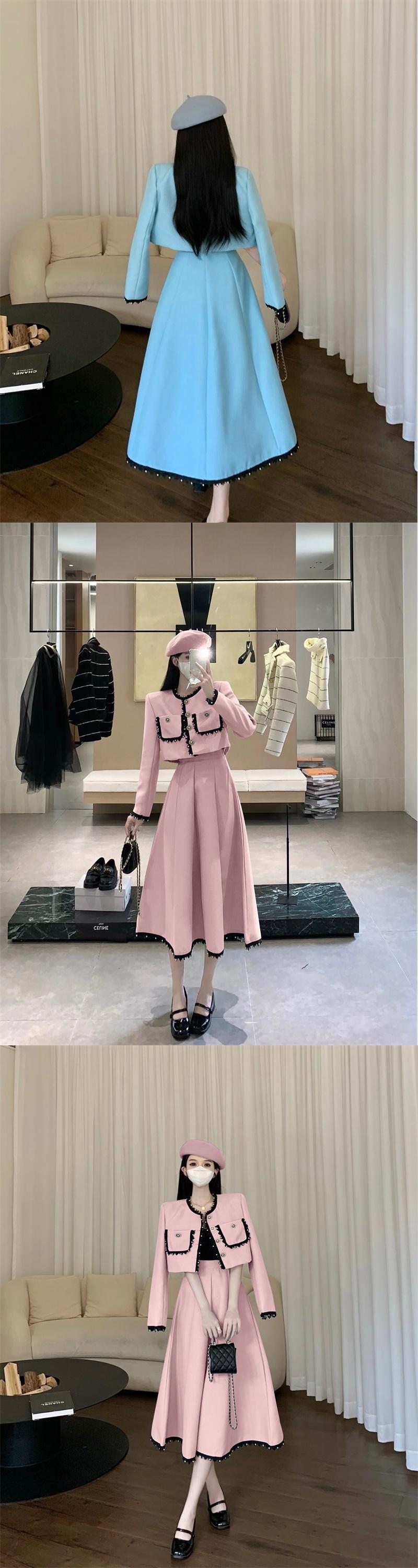 春甘いツーピースセット女性ジャケットコート + ロングスカートスーツ小さな香りビーズ 2 点セット女性の衣装 大人ガーリー スウィート キュート カジュアル スプリング 春物 mes23533226047