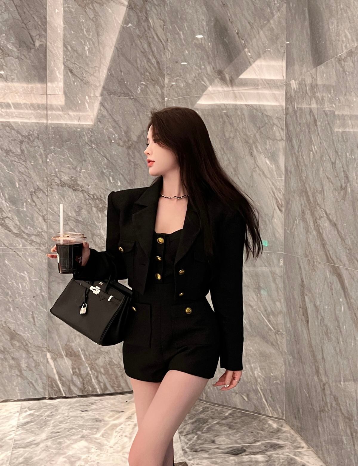 秋冬ストリート 2 点セット レディース衣装アンサンブル ジャンプスーツ + ショート ジャケット コート ツイード 2 点セット オータム 秋物 ウィンター 冬物 mes34955547494
