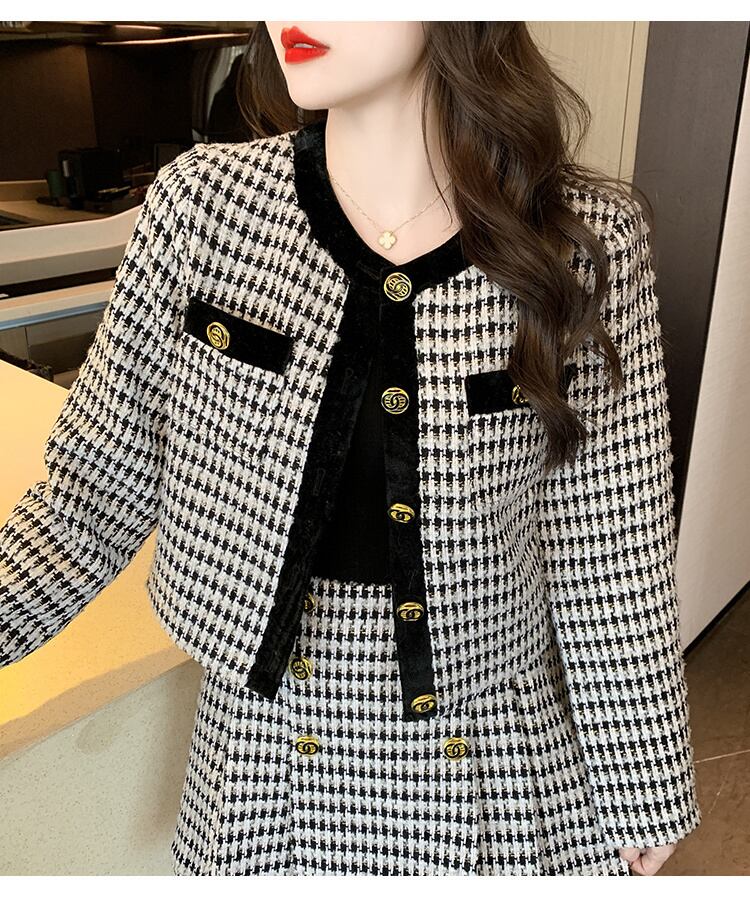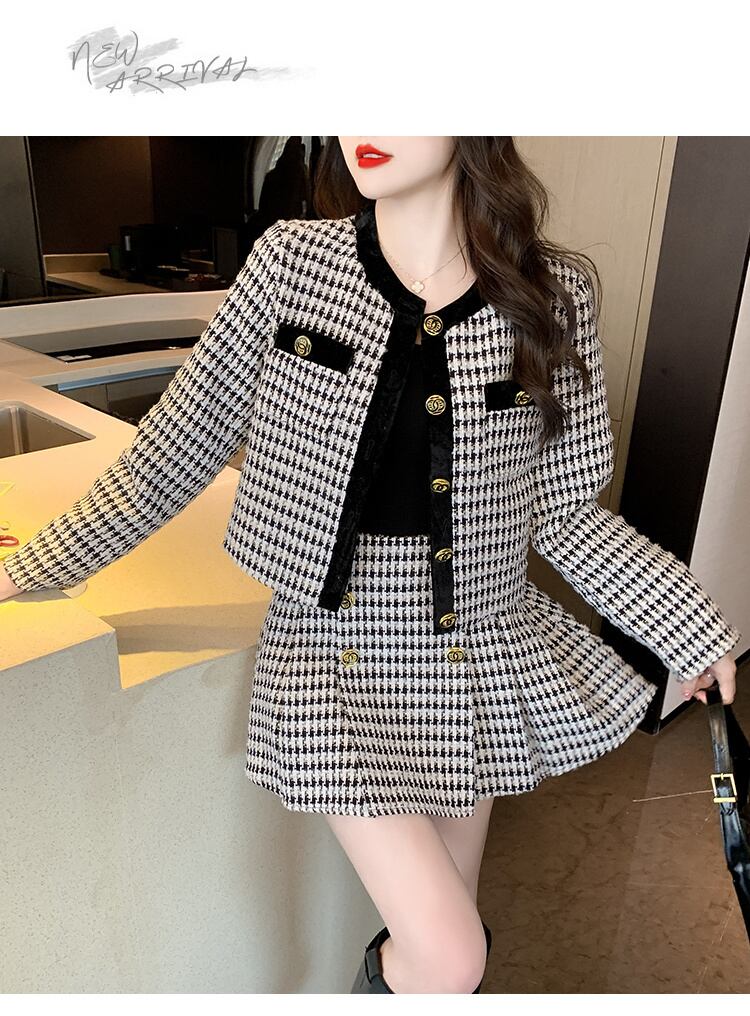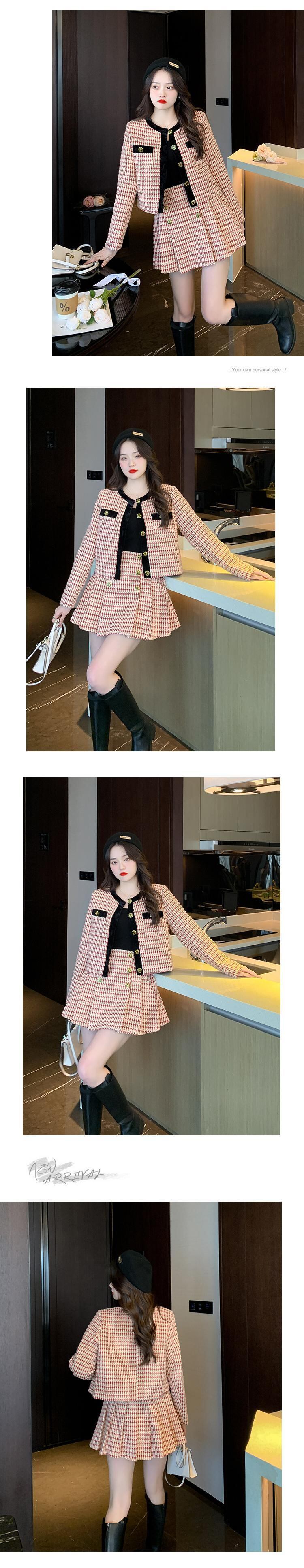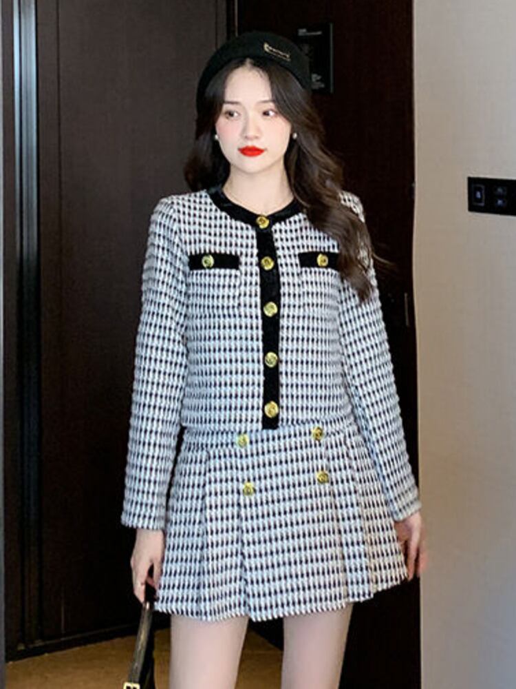 秋冬スモールフレグランスツイード 2 点セット女性ショートジャケットコート + プリーツスカートスーツツーピース衣装 オータム 秋物 ウィンター 冬物 mes32094626234