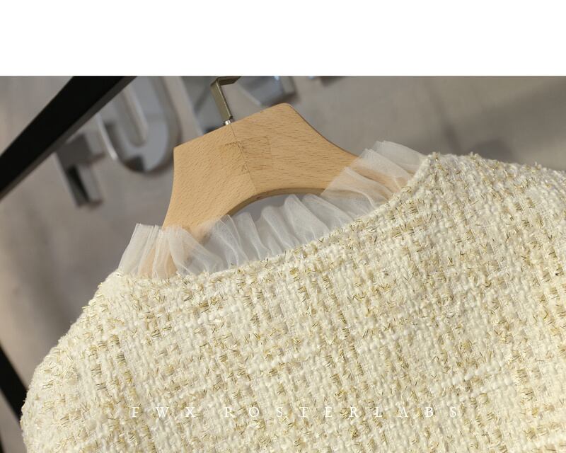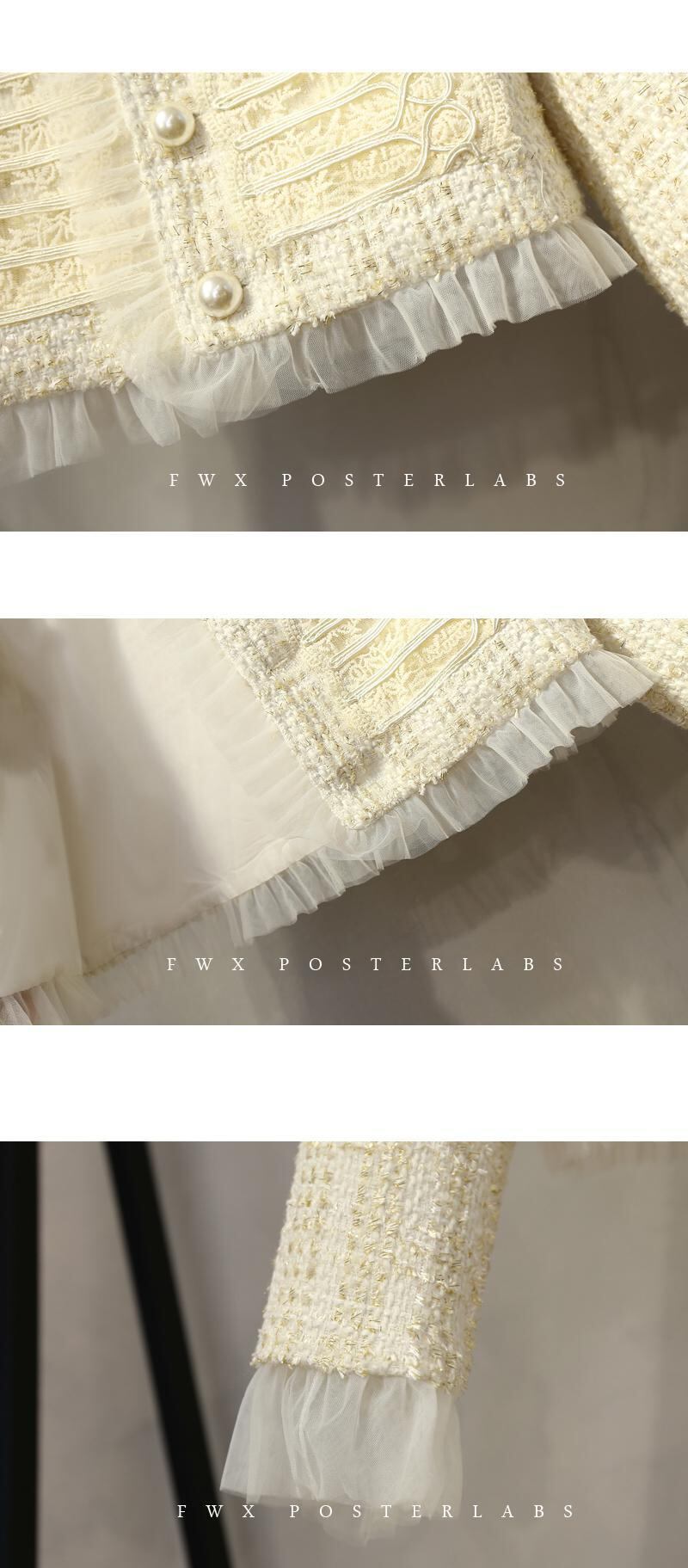 小さな香り春秋スカート 2 点セットの女性の高級ボタンウールツイードジャケットショートコート + スカートスーツ スプリング 春物 mes10978929082