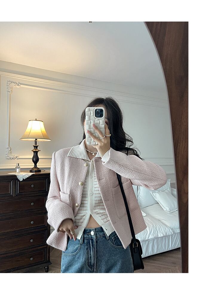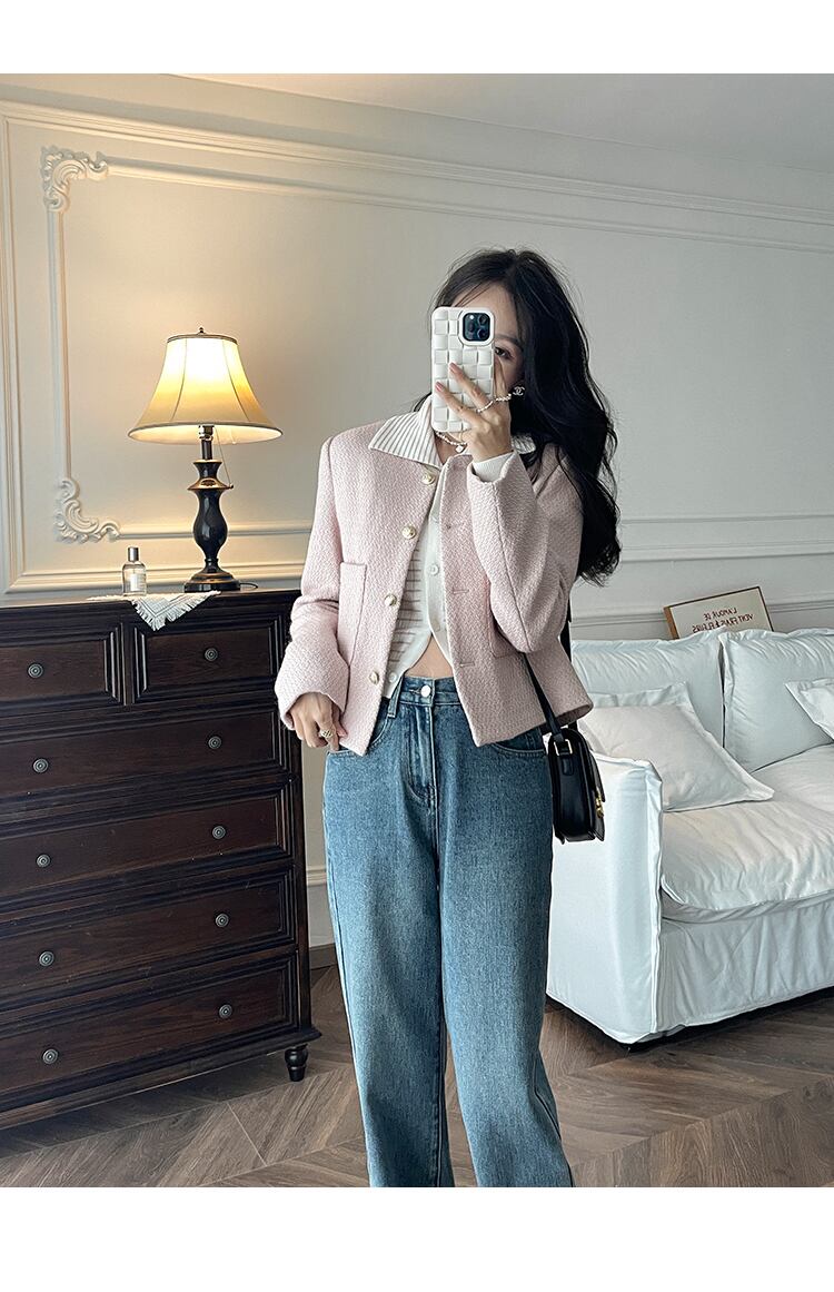 秋冬スウィートピンクスモールフレグランスツイードコート女性高級ウールジャケット Casaco 滑走路生き抜くトップ 大人ガーリー キュート カジュアル オータム 秋物 ウィンター 冬物 mes50144720136