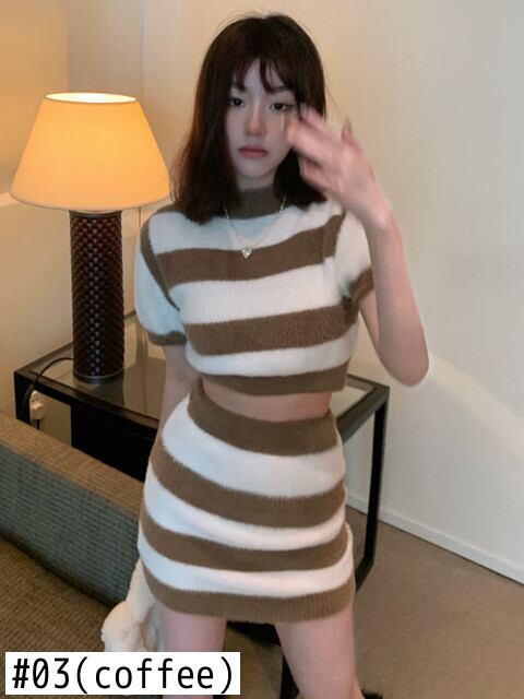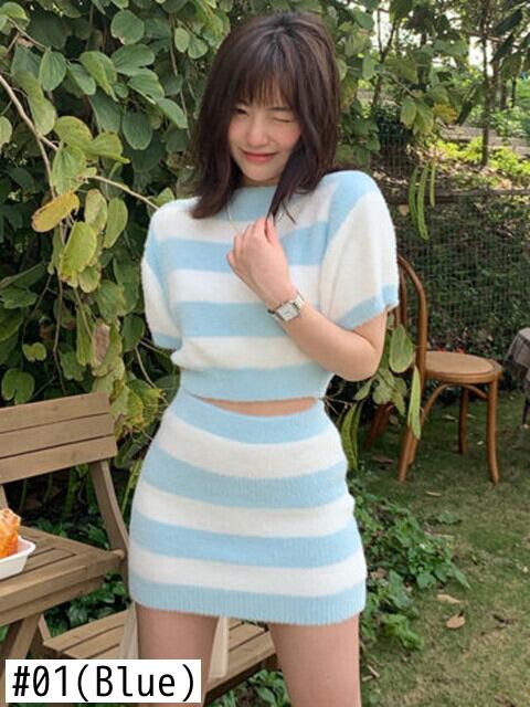 夏甘いニット 2 点セット女性クロップトップ + ボディコンスカートスーツ女の子セクシーなショートプルオーバーセーター & スカート 2 点セット 大人ガーリー スウィート キュート カジュアル サマー 夏物 mes86242067269