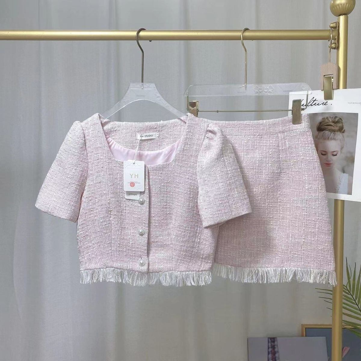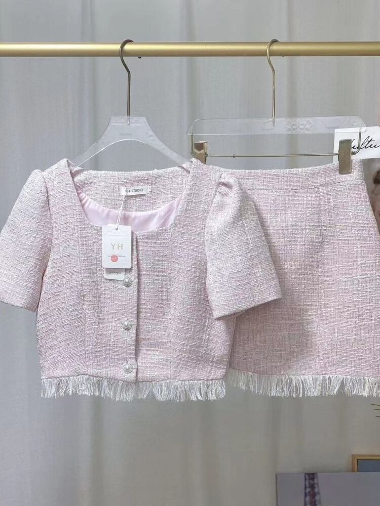 甘い小さな香りツーピースセット女性ショートジャケットコート + スカートセット夏 2 ピース衣装 大人ガーリー スウィート キュート カジュアル サマー 夏物 mes41845263897