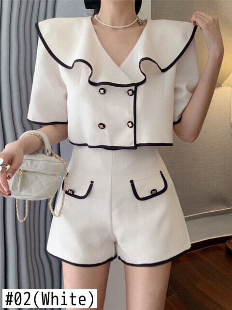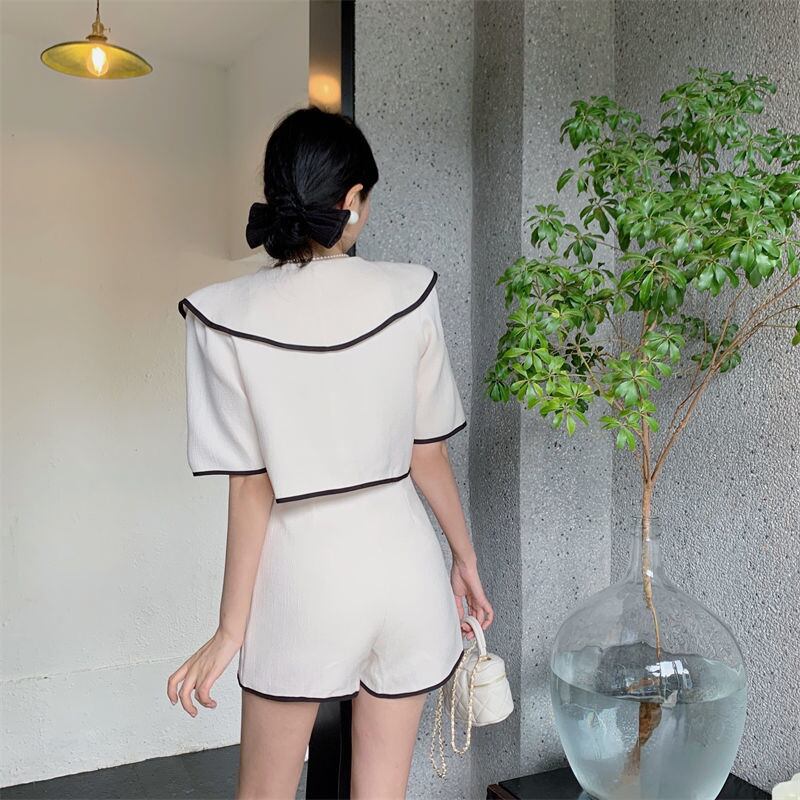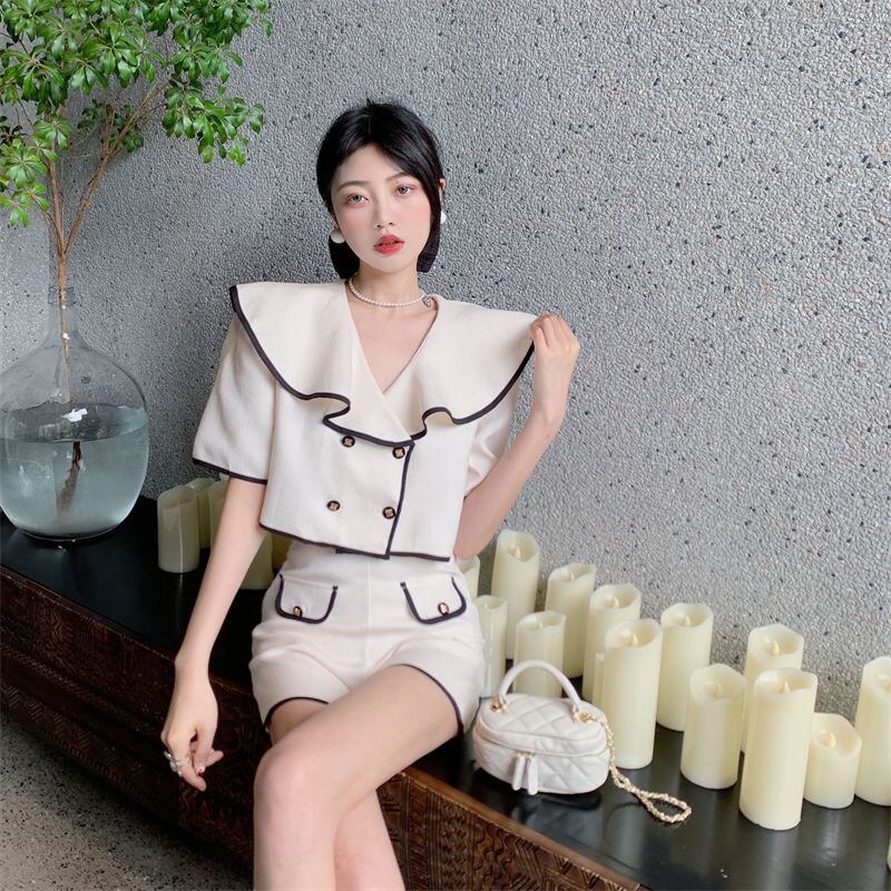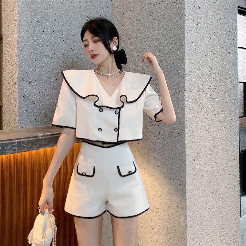 小さなフレグランス ショーツ セット 2 点セット女性シャツ クロップ トップ + ショーツ スーツ 2 ピース パンツ セット ブルマー mes91171503085