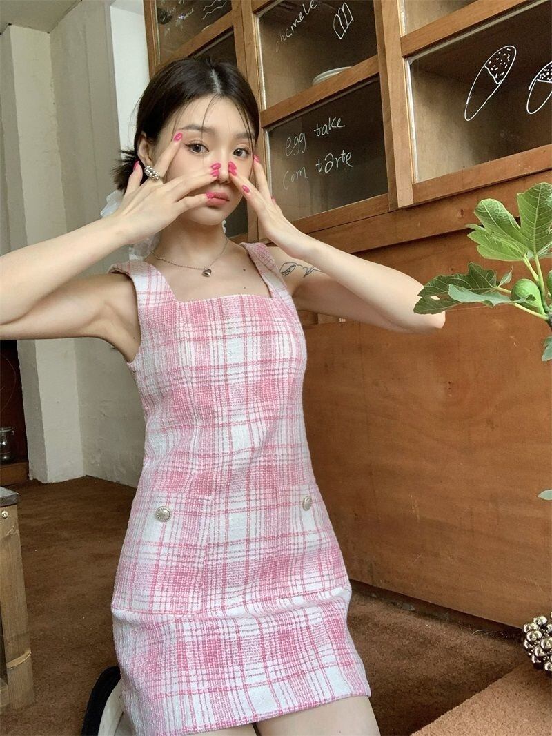 甘い小さな香りツイードドレス女性フレンチウールサマードレスパーティー Vestidos 大人ガーリー スウィート キュート カジュアル 夏物 mes28161329080
