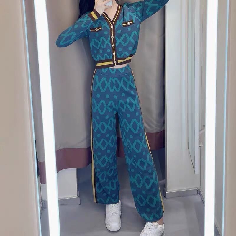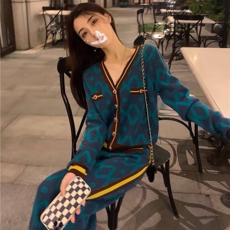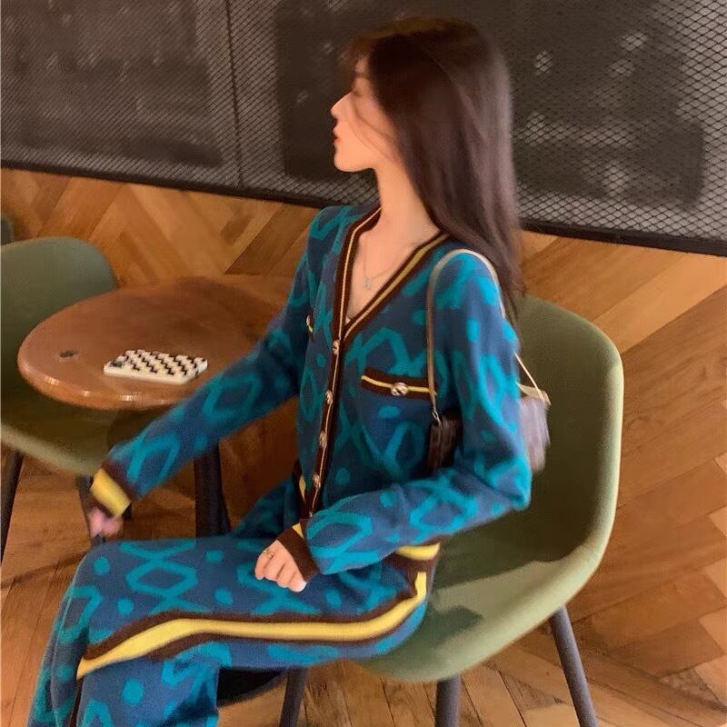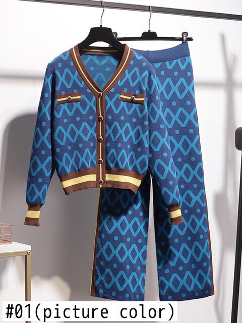 秋冬ニットツーピースセット女性クロップトップセーターカーディガンコート + ワイドレッグパンツスーツトラックスーツ女性 2 ピースセット オータム 秋物 ウィンター 冬物 ワイドパンツ mes7607380400