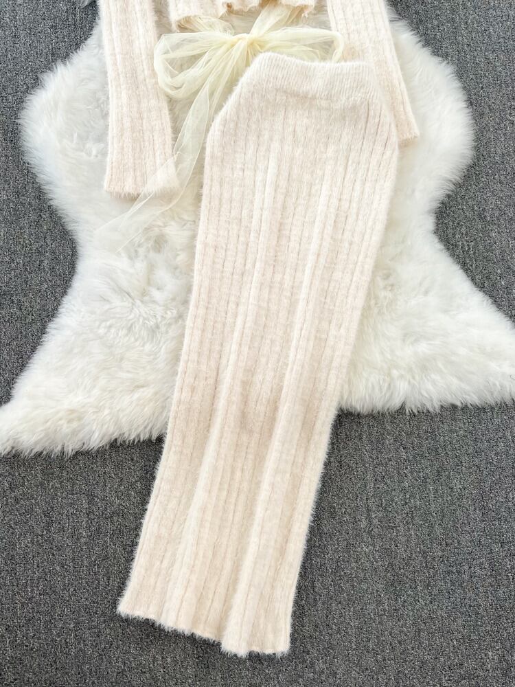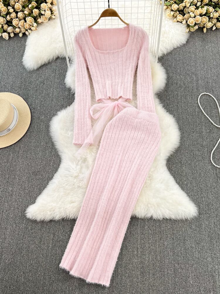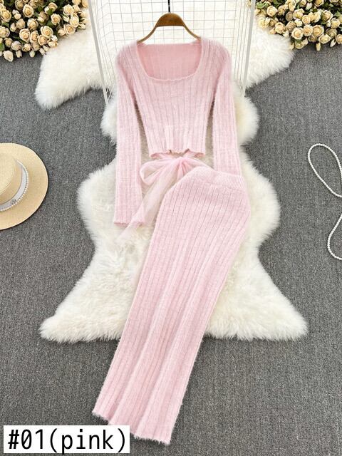 シックな甘いニット 2 点セット女性セーター クロップ トップ + ボディコン スカート セット女の子トップス & スカート スーツ 2 点セット 大人ガーリー スウィート キュート カジュアル mes7027783488
