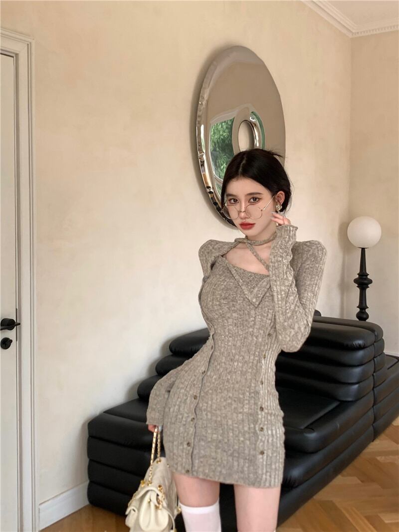 イブニングドレス女性秋冬セーターvestidosデmujerスリムドレスローブプルファムhiver オータム 秋物 ウィンター 冬物 フェミニン mes43709884139
