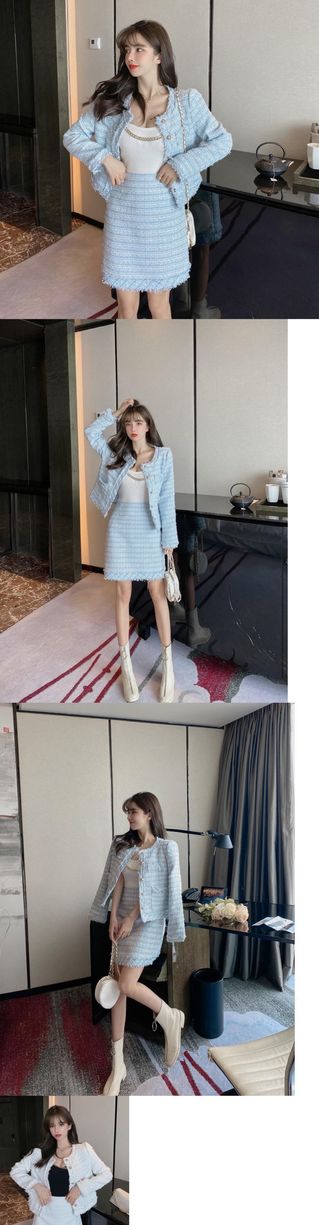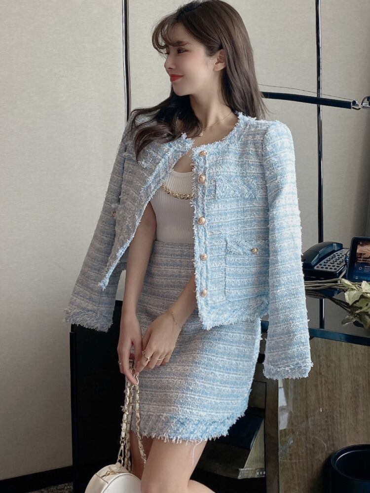 秋冬ツイードツーピースセット女性ウールショートジャケットコート + スカートセット小さな香り 2 ピーススーツ オータム 秋物 ウィンター 冬物 mes43216972797